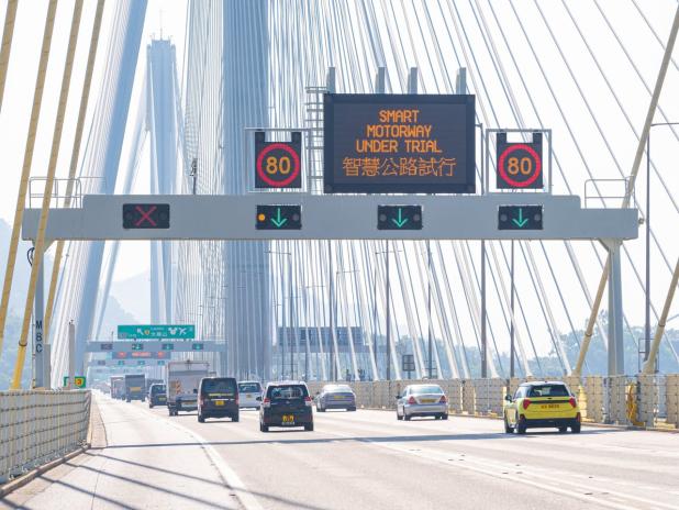 運輸署表示,汀九橋「智慧公路」先導計劃試行1個月運作暢順。(運輸署)