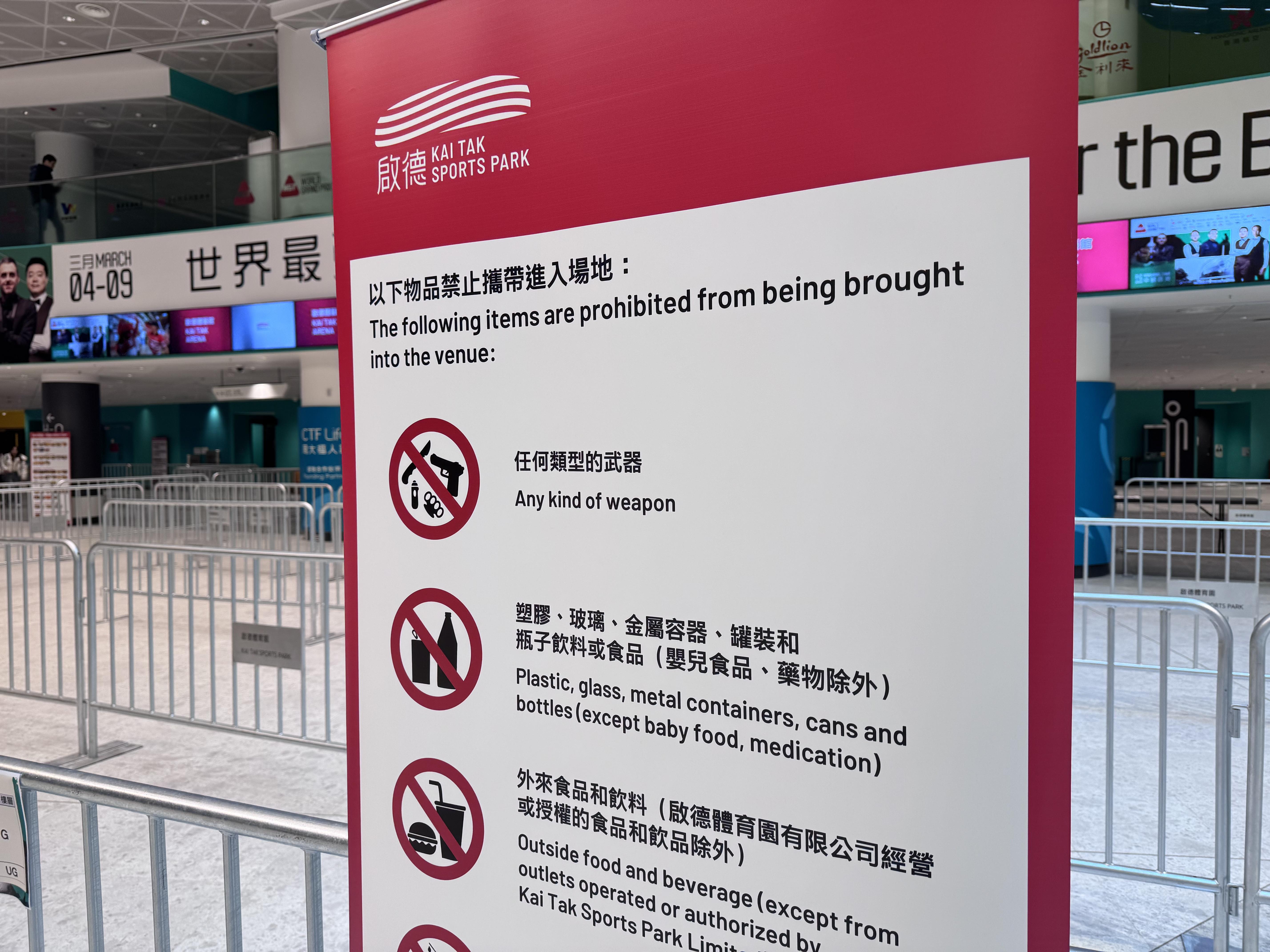 啟德體育園體藝館在本月4至9日,一連6日舉行「世界格蘭披治桌球大獎賽2025」,綠色和平今日(9日)表示,旗下減廢團隊周三(5日)及周五(7日)到場視察到場視察,發現場館告示列明「請勿攜帶任何容器進場」,唯團隊發現場內貴價門票觀眾席上,預設擺放連蓋的膠樽;大會涉向貴賓席人士派發連蓋樽裝水,製造不必要的即棄垃圾。另外,團隊亦發現有貴賓成功將自備杯帶入場內,未有職員阻止,兩個情況均明顯與場館規例不相符,斥造成不公平、安全考慮因說法不攻自破。