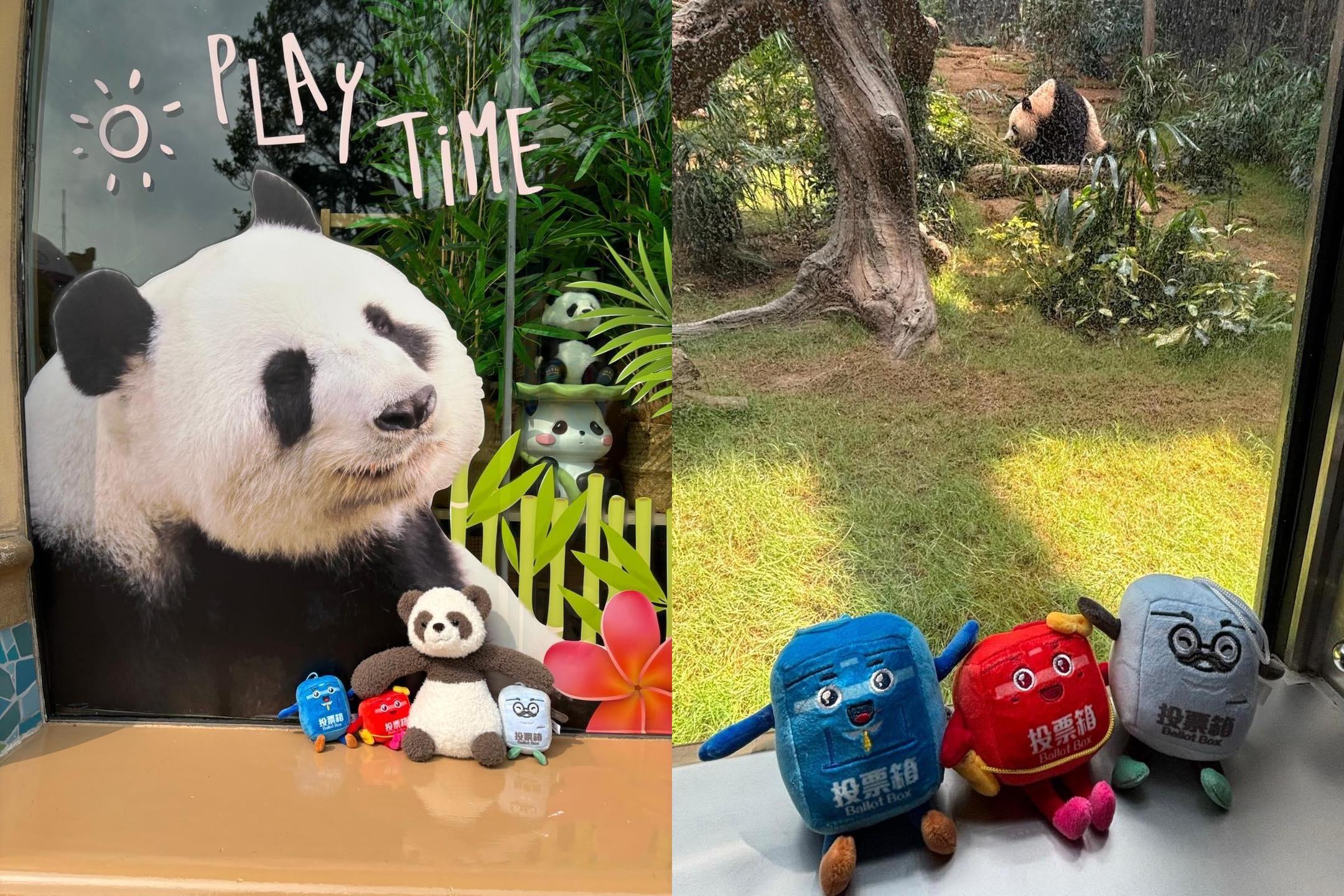 返回 本地 出版:2025-May-05 11:29 更新:2025-May-05 11:29 Ray Online|票箱寶寶出沒海洋公園注意! 呼籲盈盈樂樂一齊投票? 分享: 票箱寶寶現身海洋公園。(政制局FB) 負責鼓勵市民登記做選民同投票嘅選舉吉祥物「票箱寶寶」,近日放假就去咗海洋公園探吓大熊貓,選舉寶寶仲話識到新朋友大熊貓先生。 選舉寶寶就好奇,大熊貓究竟幾多歲成年呢?係咪可以叫盈盈樂樂登記呢?阿Ray就上網查過,原來雌性大熊貓一般5歲踏入成年期,雄性大熊貓則是6歲。唔知樂樂盈盈符唔符合資格呢? ADVERTISEMENT