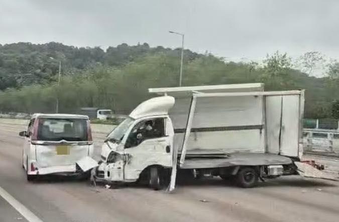 今日(8日)早上約11時半,吐露港公路往九龍方向、近大埔滘位置有5輛車連環相撞,當中包括3輛私家車、1輛輕型貨車及1輛中型貨車。中貨車身被撞至凹陷、車身被撞至散開;連同其中一輛私家車橫亙路中。警方和救援人員接報後趕至現場,輕型貨車上男司機及女乘客一度被困,另外1名私家車男司機頭暈不適,共5人受傷。警方正在調查車禍起因。