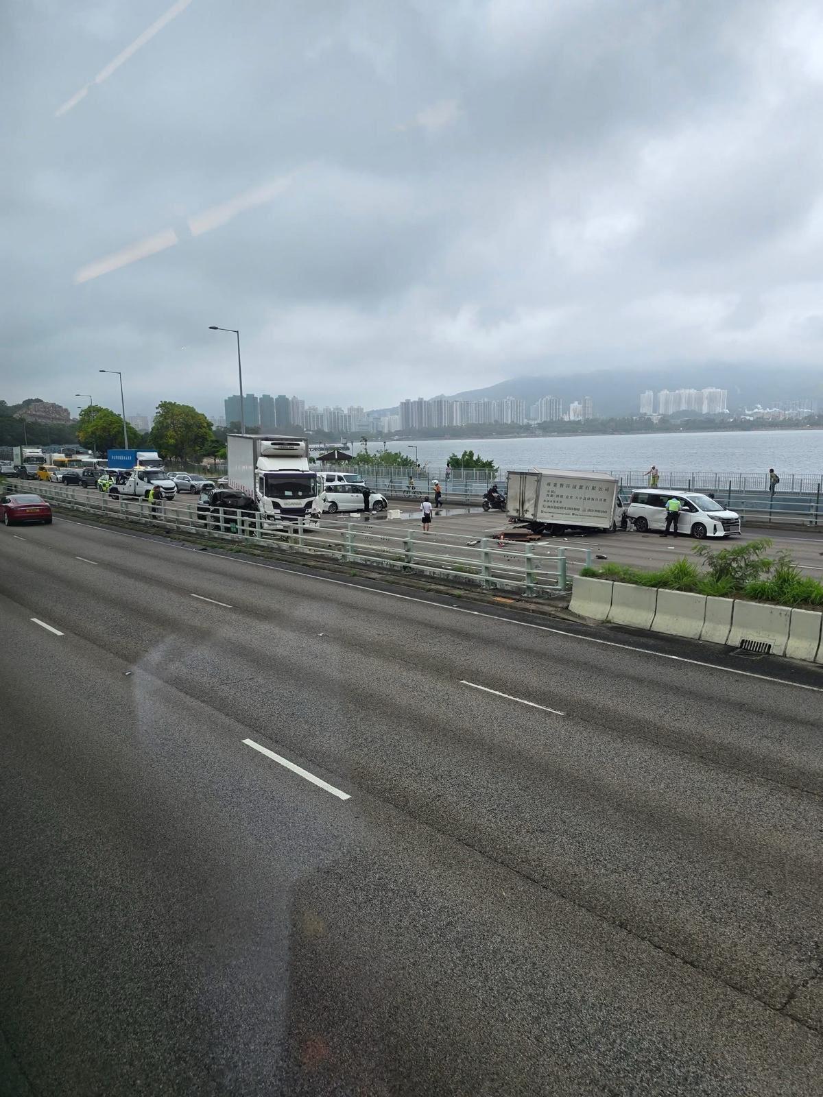 吐露港公路發生5車連環「串燒」車禍。(fb「馬路的事 (即時交通資訊台)」圖片)