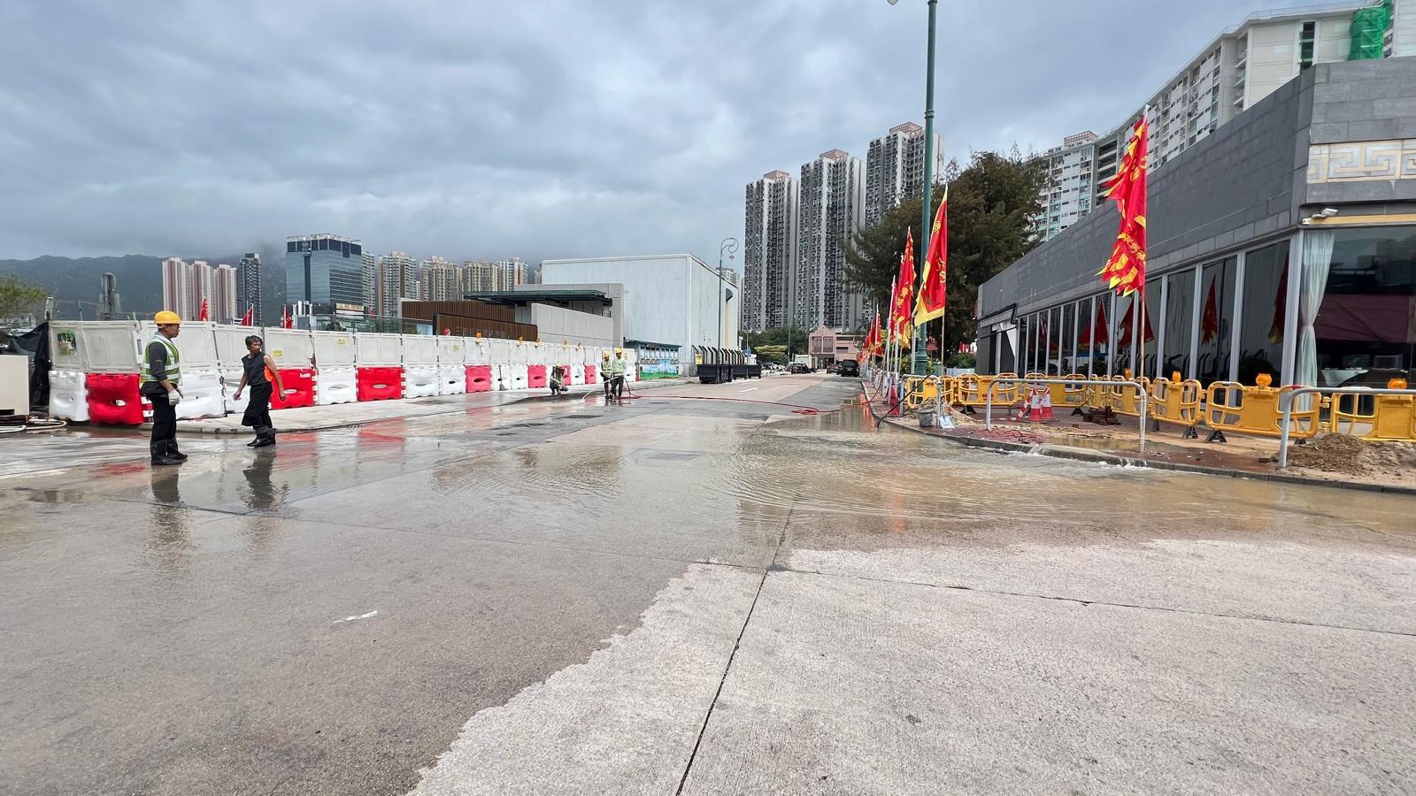經完成供水調度及確定水管維修工程細節後,水務署安排於昨晚約11時後開展相關維修工作,以減少對附近食肆的影響。現時,三聖街行車不受影響,相關範圍的沖廁水供應已暫停,而食水供應則維持正常至今晚11時。水務署亦正安排水箱,在停止供水前到現場為受影響用戶提供臨時食水供應。水務署會盡快完成相關水管維修工程,就有關事故對市民構成不便表示抱歉。