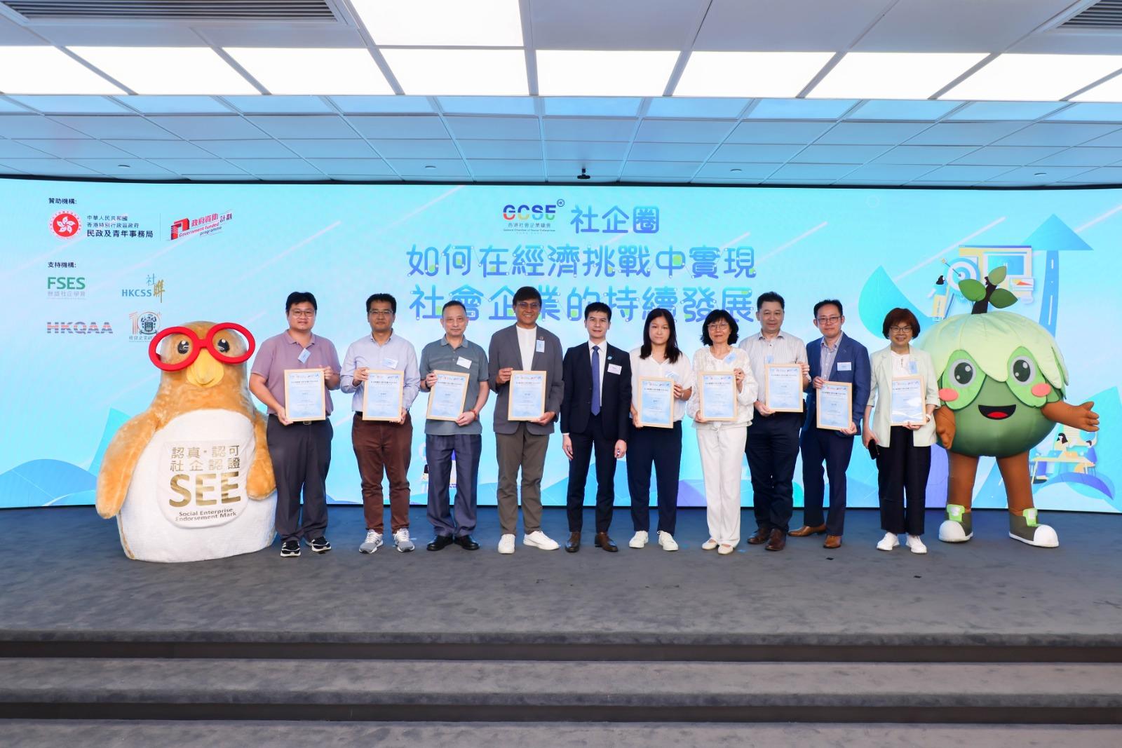 由香港特別行政區政府民政及青年事務局贊助,香港社會企業總會在2025年7月15日舉辦「社企圈 - 如何在經濟挑戰中實現社會企業的持續發展」交流及展銷活動,邀請到民政及青年事務局首席助理秘書長(民政事務) 嚴鈞樂先生作為主禮嘉賓,為活動致開幕辭及頒發社企營運能力提升計劃證書。活動展示10家社會企業的創新產品與服務,並有嘉賓分享在經濟挑戰中社企如何持續發展,促進各界持份者與社企合作,共同推動環境、社會及管治(ESG)目標,創造正面社會影響。