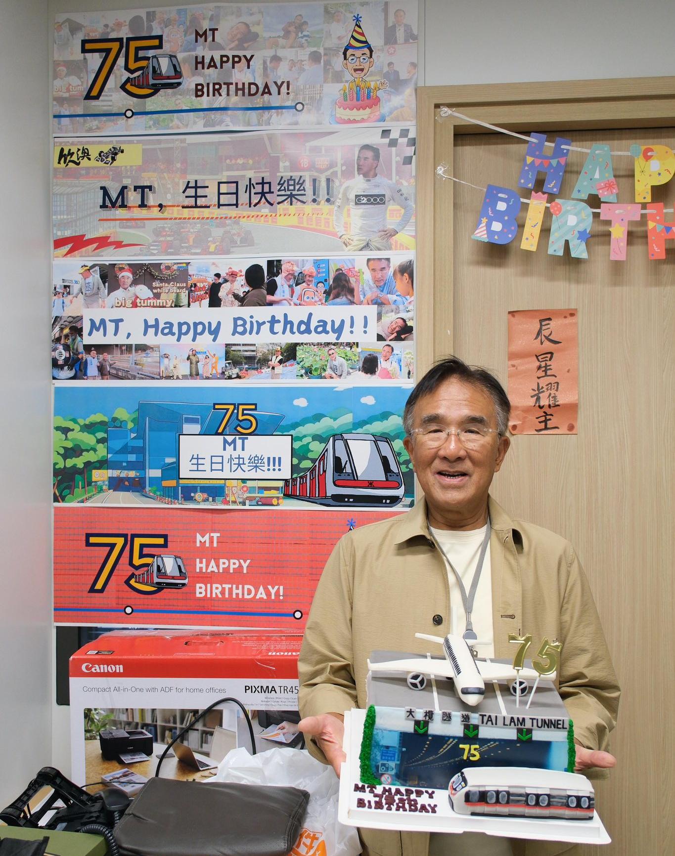 日前行政會議成員、新民黨主席葉劉淑儀75歲大壽,由一眾支持者喺銅鑼灣街頭大派應援物,墟冚嘅場面引起唔少關注。相隔數日,實政圓桌立法會議員田北辰(田二少)都75歲生日!佢今日(26日)就喺Facebook分享自己生日活動,提到原來立法會辦公室同事每年都會為佢設計生日蛋糕,而今年主題就係「田北辰一直努力推動的多項惠民政策」,其中蛋糕上嘅飛機代表改善屯門東飛機噪音問題;大欖隧道就指爭取欖隧非繁忙時間免收費;而位於蛋糕最前位置嘅港鐵列車,就代表「洪欣鐵路」及屯門沿岸跨海新鐵路規劃。