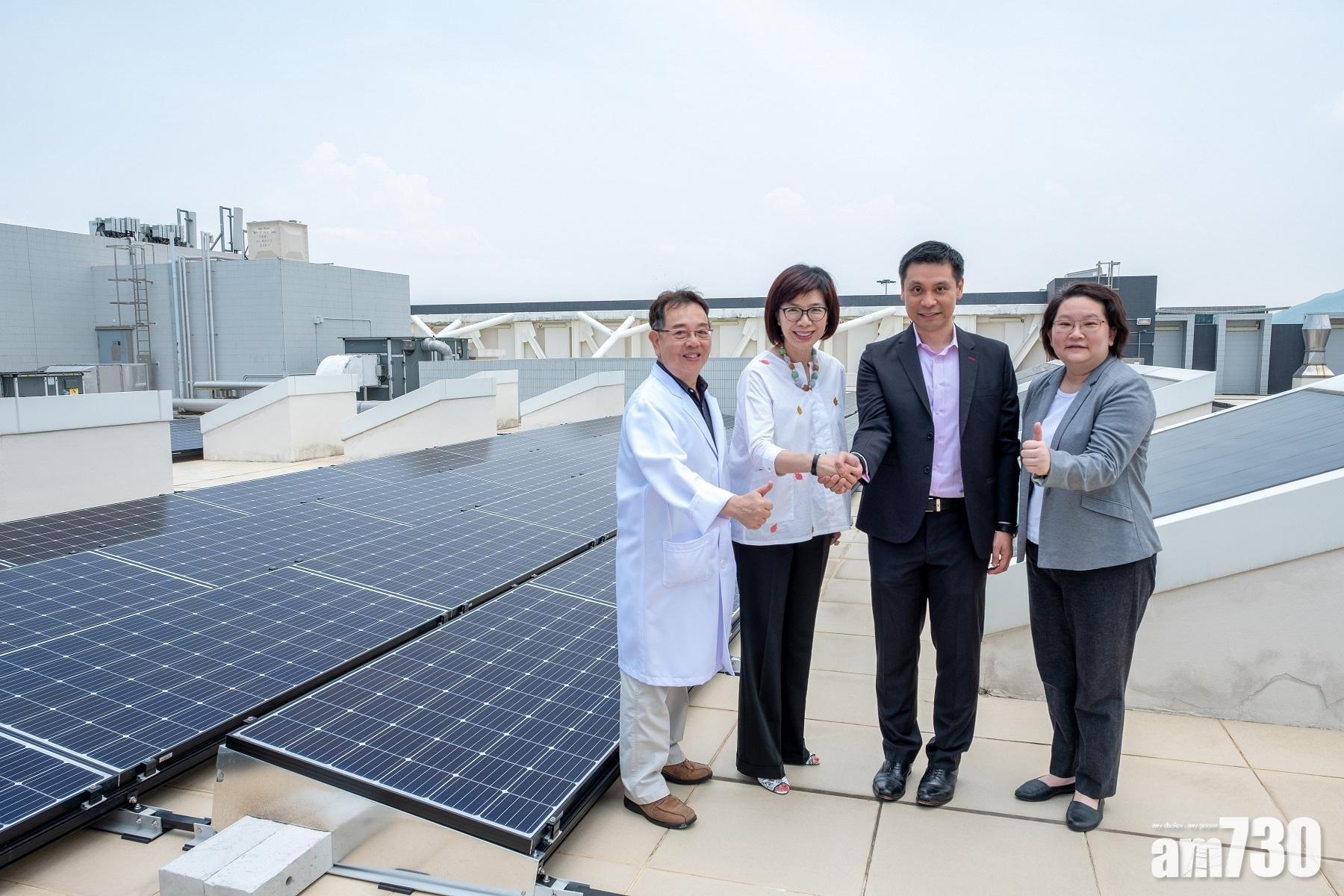 何明華會督銀禧中學於校舍內裝設144塊太陽能板,每年可生產近5萬7千度電。(中電提供)