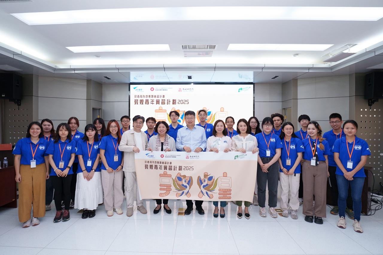 「民青局內地專題實習計劃 – 敦煌青年實習計劃2025」順利啟動,敦煌研究院黨委書記程亮先生(前排左七)、民政及青年事務局常任秘書長林雪麗女士JP(前排左八)、敦煌青年實習計劃義務顧問紀文鳳女士GBS, SBS, JP(前排左六)與一眾學生代表合照,共同開啟絲路文化探索之旅。