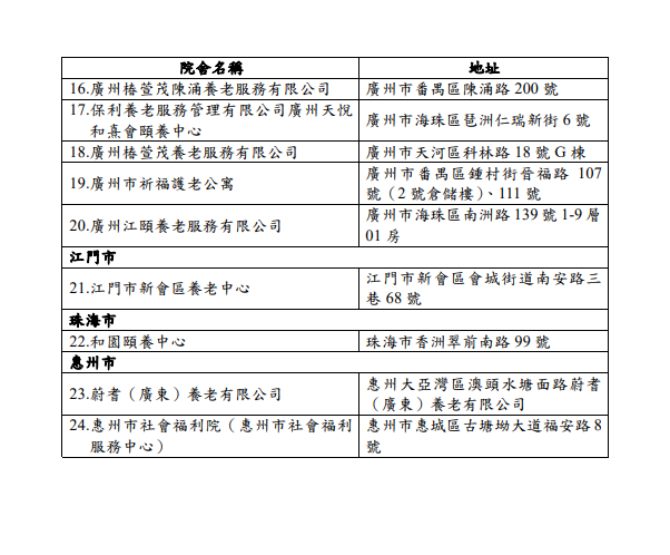 社署表示,香港房屋委員會已於今年3月起實施更靈活的租務安排,為選擇到內地養老的長者提供更長的適應期。參與試驗計劃的公屋長者住戶由離港到內地養老起,可保留其現居公屋單位或戶籍6個月。上述安排亦適用於房協出租屋邨的長者住戶。