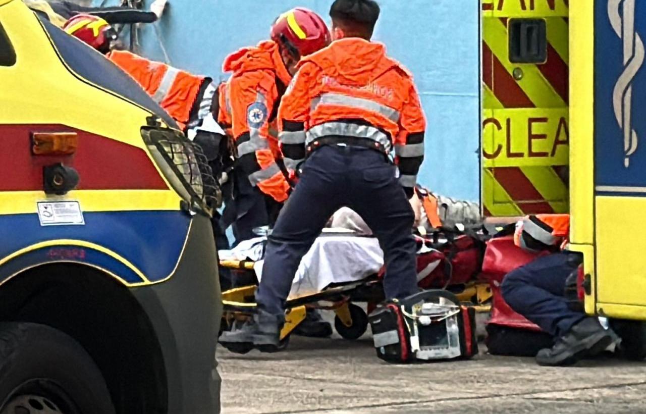 颱風樺加沙來襲,柴灣嘉業街一家三口墮海被救起,母子昏迷。(香港電台新聞圖片)