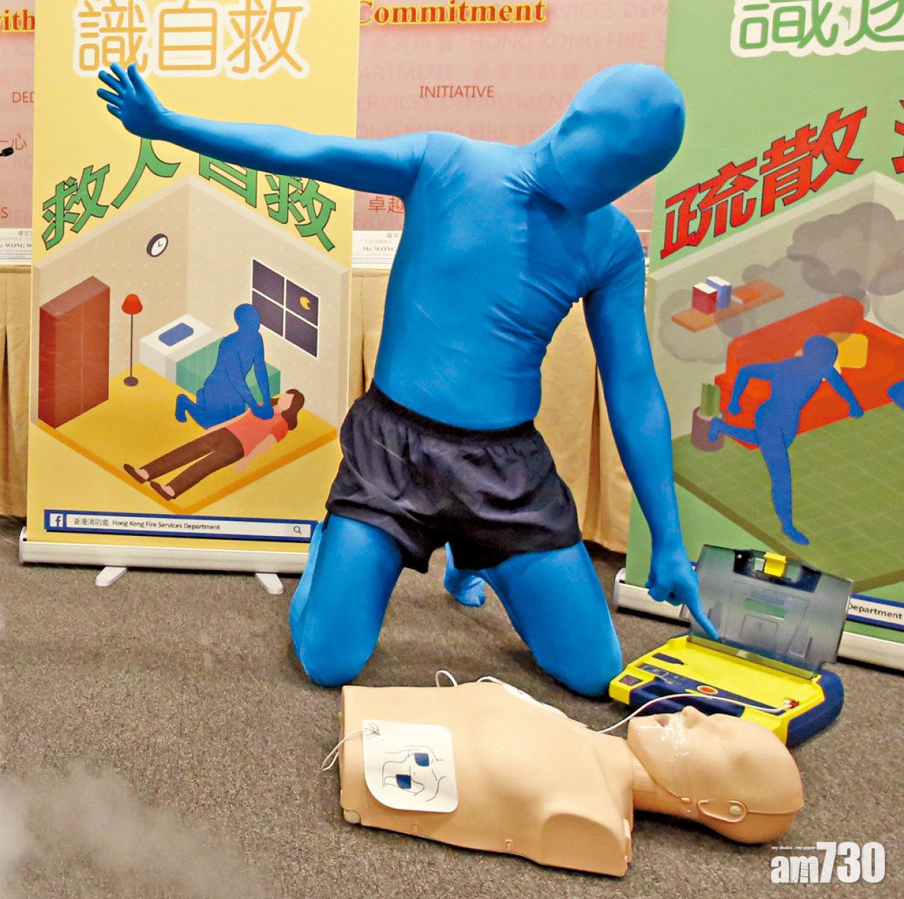 「任何仁」示範AED機急救方法。(資料圖片)