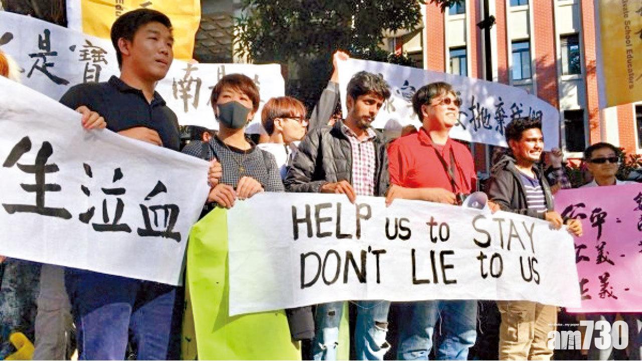 台南校區的師生則成立自救會,包括斯里蘭卡學生等二十多名師生,昨北上教育部請願(圖2),指教育部停發獎勵補助及禁止招生的處罰,將導致學校運作困難,對無辜師生不公平。他們高呼「We want to study. We want to stay」、「保證在地就學至畢業」等口號,呼籲教育部接管康寧大學董事會,讓康寧大學轉型為「新南向示範大學」,持續發展。