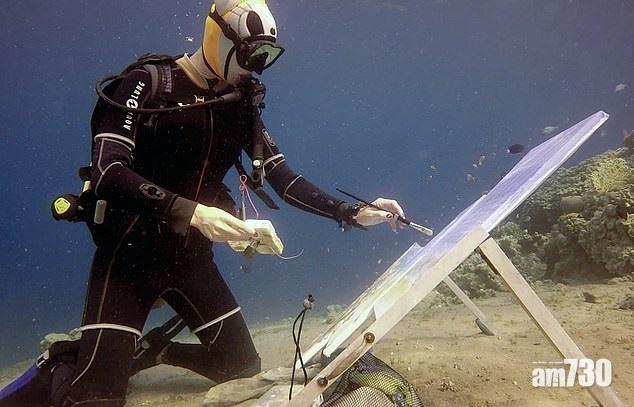 俄羅斯專業潛水教練Olga Belka(上圖),每次潛游穿梭於紅海水晶宮,都有衝動將眼前美景躍於畫框。原來水中作畫並非不可能,佩戴潛水裝備及練習一輪水中控制畫掃與顏料,畫室即可移師水府,將她心目中的蕩漾王國,生動描繪成另類創作。難得遇上同樣熱愛海洋的模特兒,配合寫生堪稱絕配。由於不能長時間在水底工作,須間歇上水以保持體能,每幅作品需時特長。Belka的作品經得起畫展考驗,捧場者眾,每幅售價逾2萬港元起;亦歡迎同好者與她同潛共繪,分享海底油畫體驗。