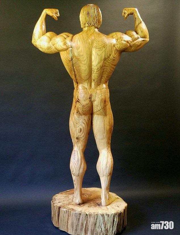 藝術家James O'Neal(圖)是阿諾舒華辛力加鐵粉,發現這株黑橡樹是可造之材,即閉關潛心刨皮削木,參照數百幅《未來戰士》及《鐵血戰士》劇照,準確拿捏偶像的每寸美肌,足足用了6個月時間,才雕刻打磨出6呎2吋高的爆肌鐵漢。據稱71歲的阿諾知悉後亦深表感動。