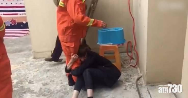 男子事後抱著消防員雙腳痛哭。(互聯網)