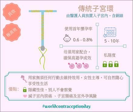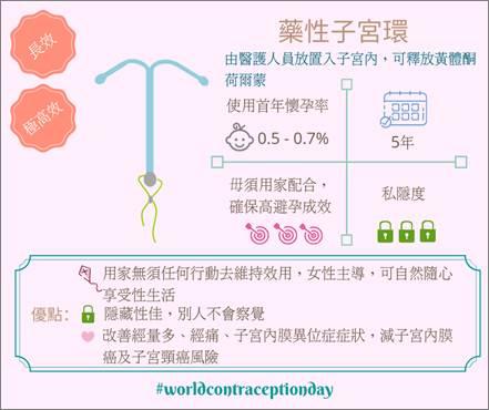 9月26日就是「世界避孕日」,是時候跳出安全套的框框,增加對各種長效可逆轉避孕方法」的認識,了解它們的優點和成效。「長效可逆轉避孕方法」指一類避孕方法,分別有藥性子宮環、傳統子宮環及皮下植入避孕棒,只需施用一次便能長期有效避孕,效用可長達數年,而且是可逆轉的。一旦停用,避孕效果就會消失,女性可自然懷孕。
