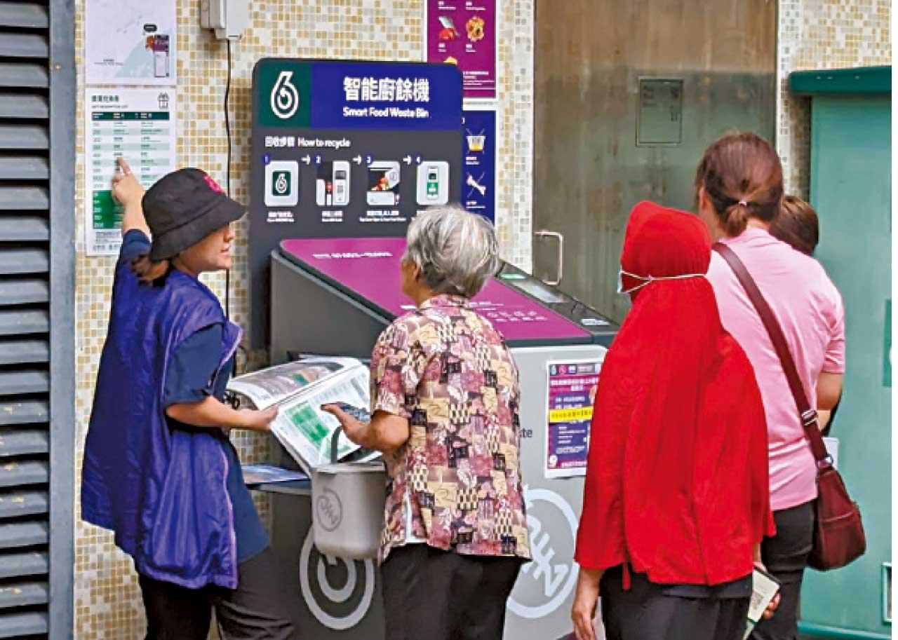 政府一直鼓勵社會參與廚餘回收,但近月不時有市民把廚餘傾倒至回收桶後,直接將膠袋棄置在附近,變相衍生其他環境衛生問題。環保署現逐步在所有公共屋邨設置廚餘回收機,在設施啟用當日並會聯同環境及自然保育基金舉辦推廣教育活動,包括派發灰色家居廚餘桶,領取者只需出示「綠綠賞」應用程式的會員頁面,毋須證明屬於該邨的居民。