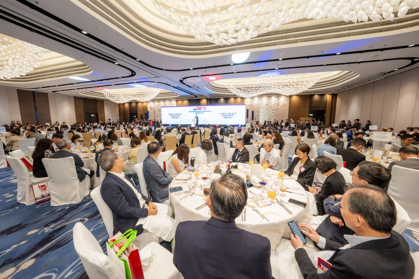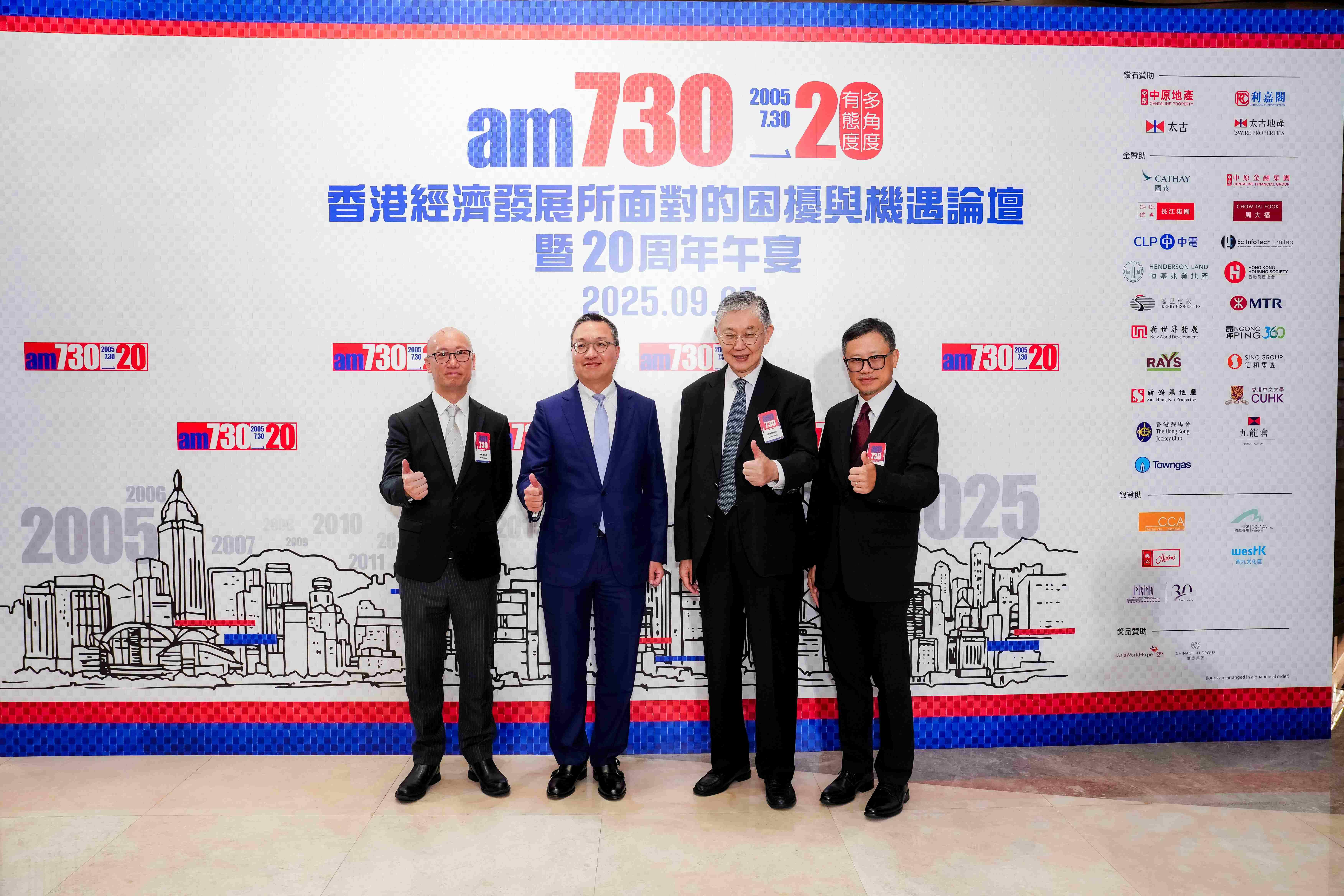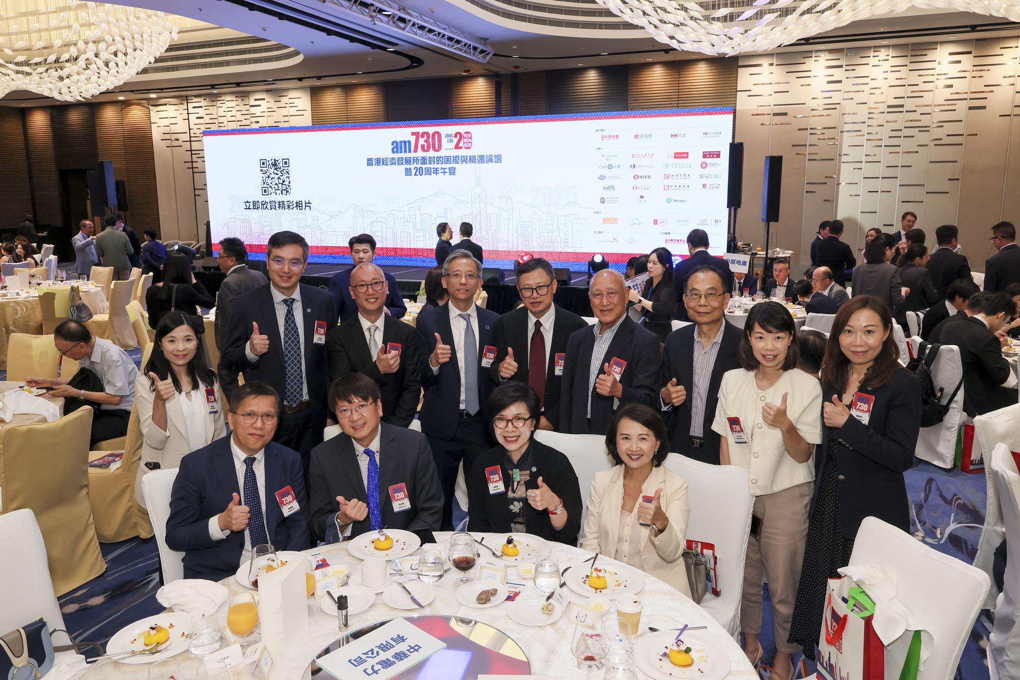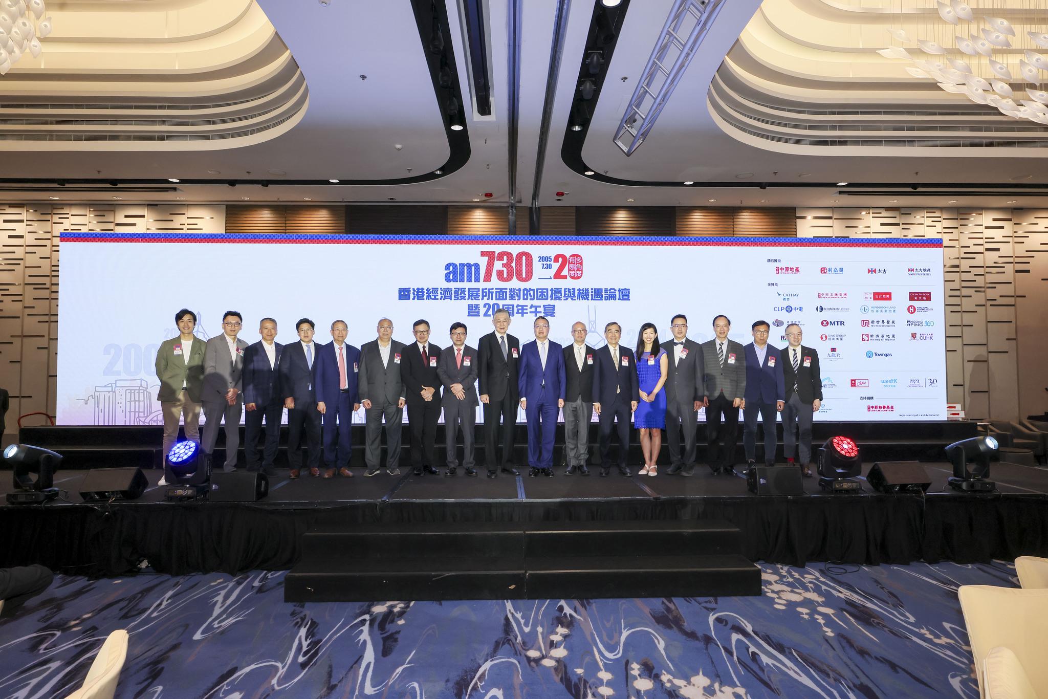 am730賀報慶20周年特別主辦「香港經濟發展所面對的困擾與機遇論壇暨20周年午宴」, 於9月5日假香港海洋公園萬豪酒店隆重舉行。當日邀得律政司司長林定國及香港大學首席副校長王于漸教授擔任主禮嘉賓,勞工及福利局局長孫玉菡、多位立法會議員、am730專欄作家、各贊助企業代表及各界好友踴躍出席,近400位政商界翹楚聚首一堂,共同探討「香港經濟發展所面對的困擾與機遇」。場面盛大,嘉賓踴躍交流,共襄盛舉!