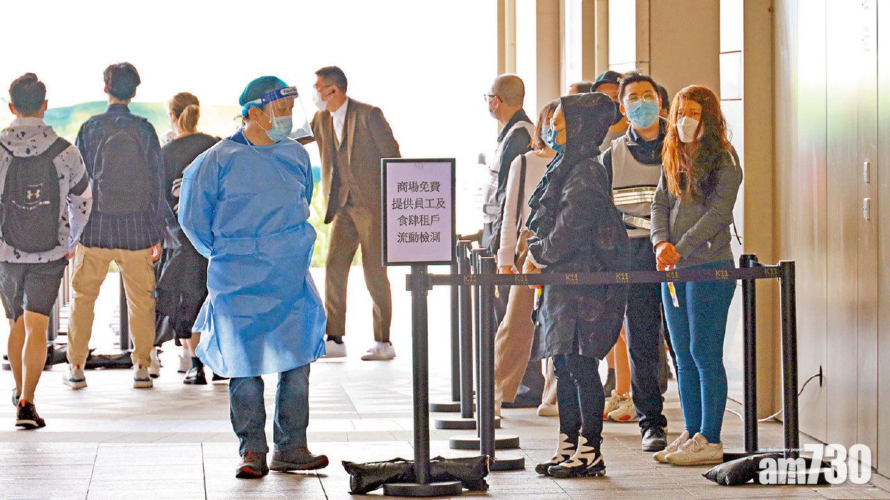 K11 MUSEA員工昨在商場樓下輪候做測試。(莊振邦攝)