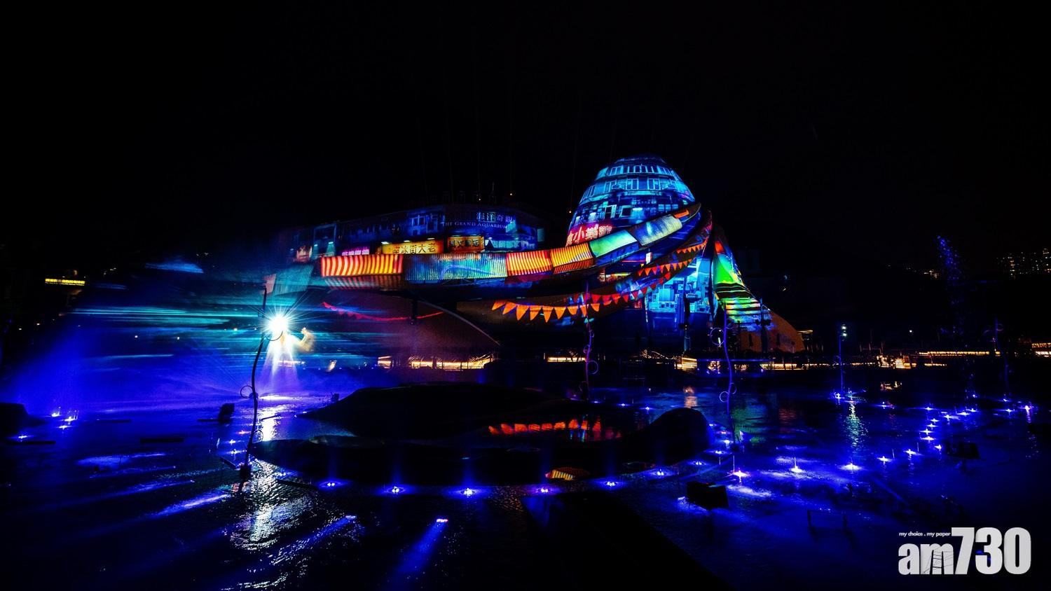 「光影都會」多媒體光雕投影匯演3月及4月週末及公眾假期再度上演。(海洋公園提供)