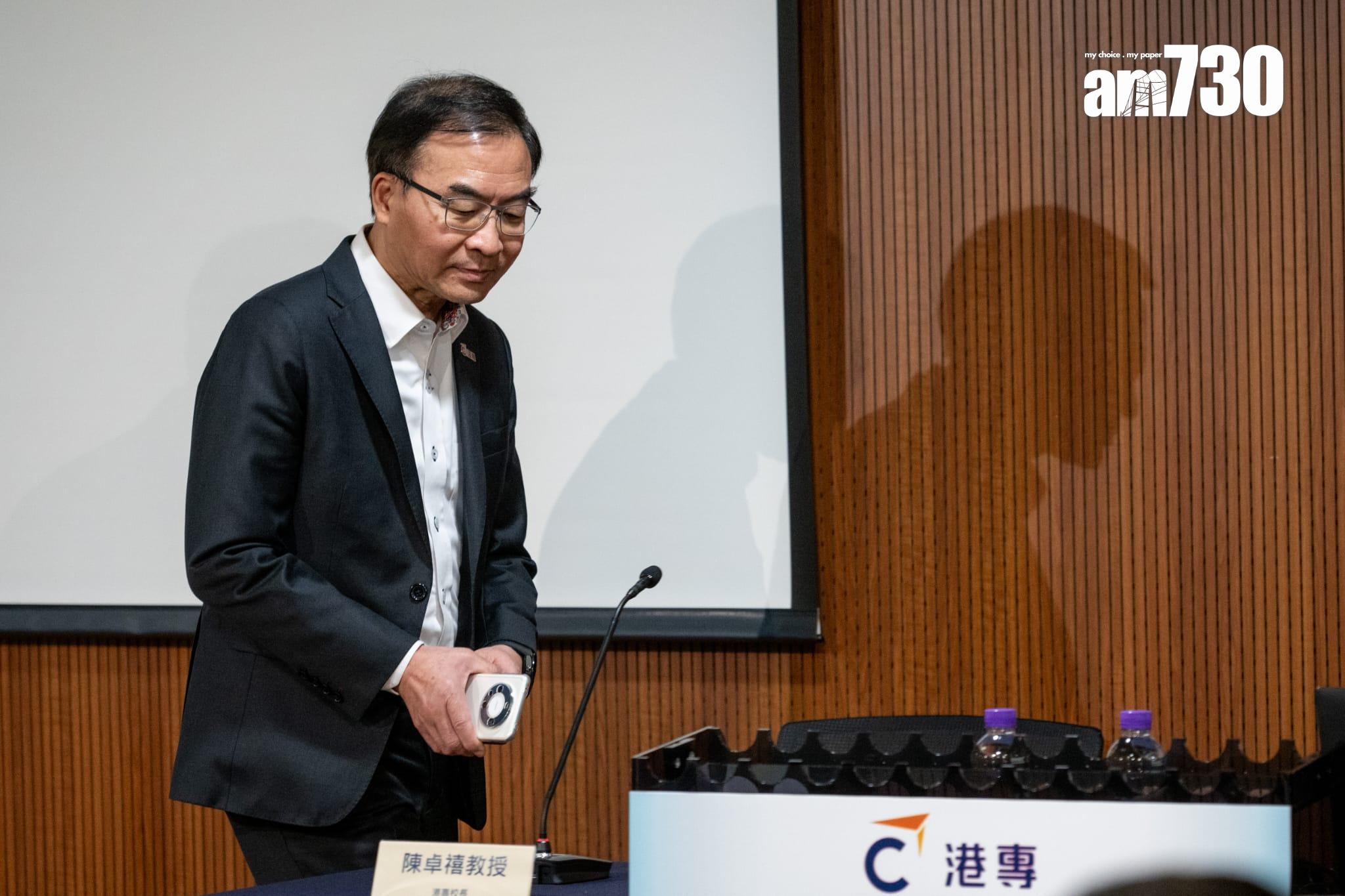 港專校長陳卓禧教授及港專社會科學院院長兼系主任崔日雄教授,即將開記者會交代事件。