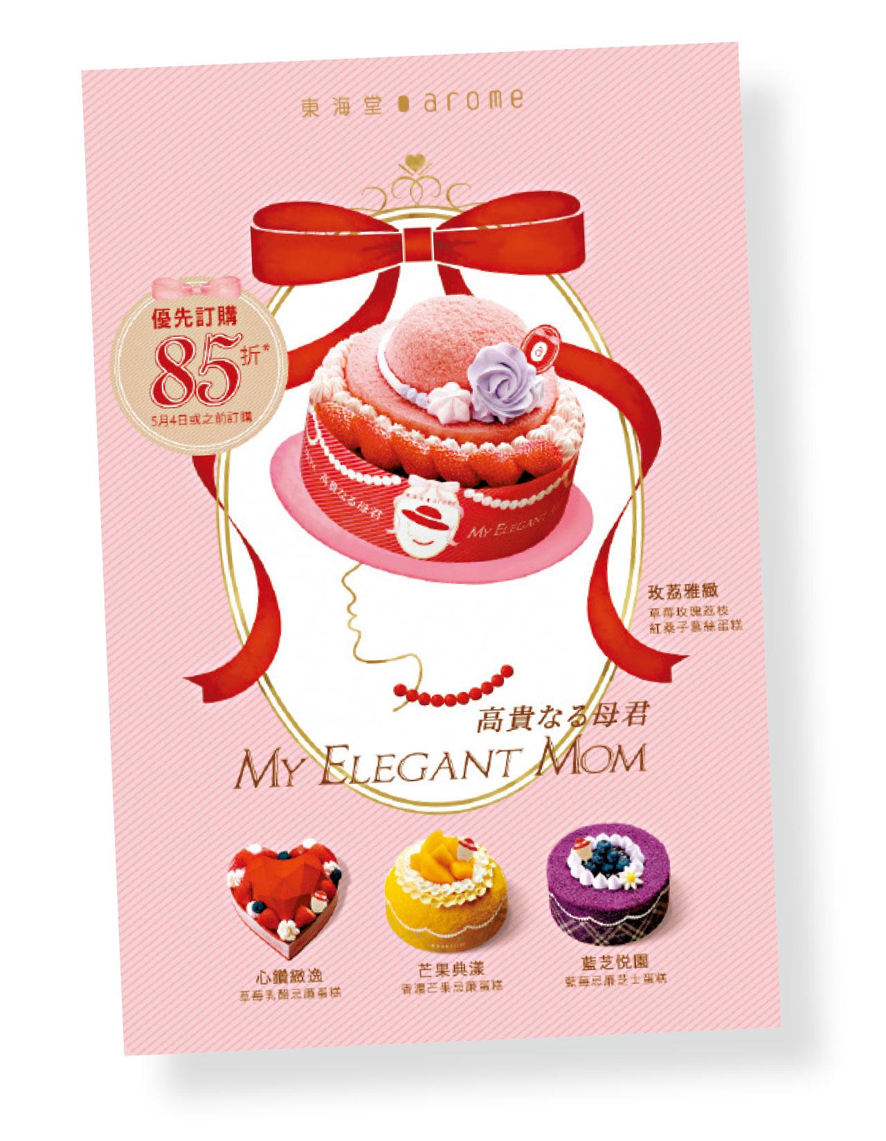 母親在兒女心目中是天底下最美麗的,其無私的愛,溢於言表,更顯高貴。arome東海堂隆重呈獻「My Elegant Mom」蛋糕系列,匠心打造多款不同口味、高貴精緻的母親節蛋糕。