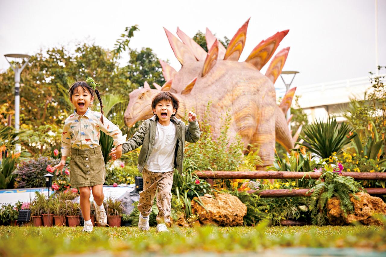 主題裝置1:1機械劍龍,高約3.7米、9米長,更不時發出叫聲及擺動身體!