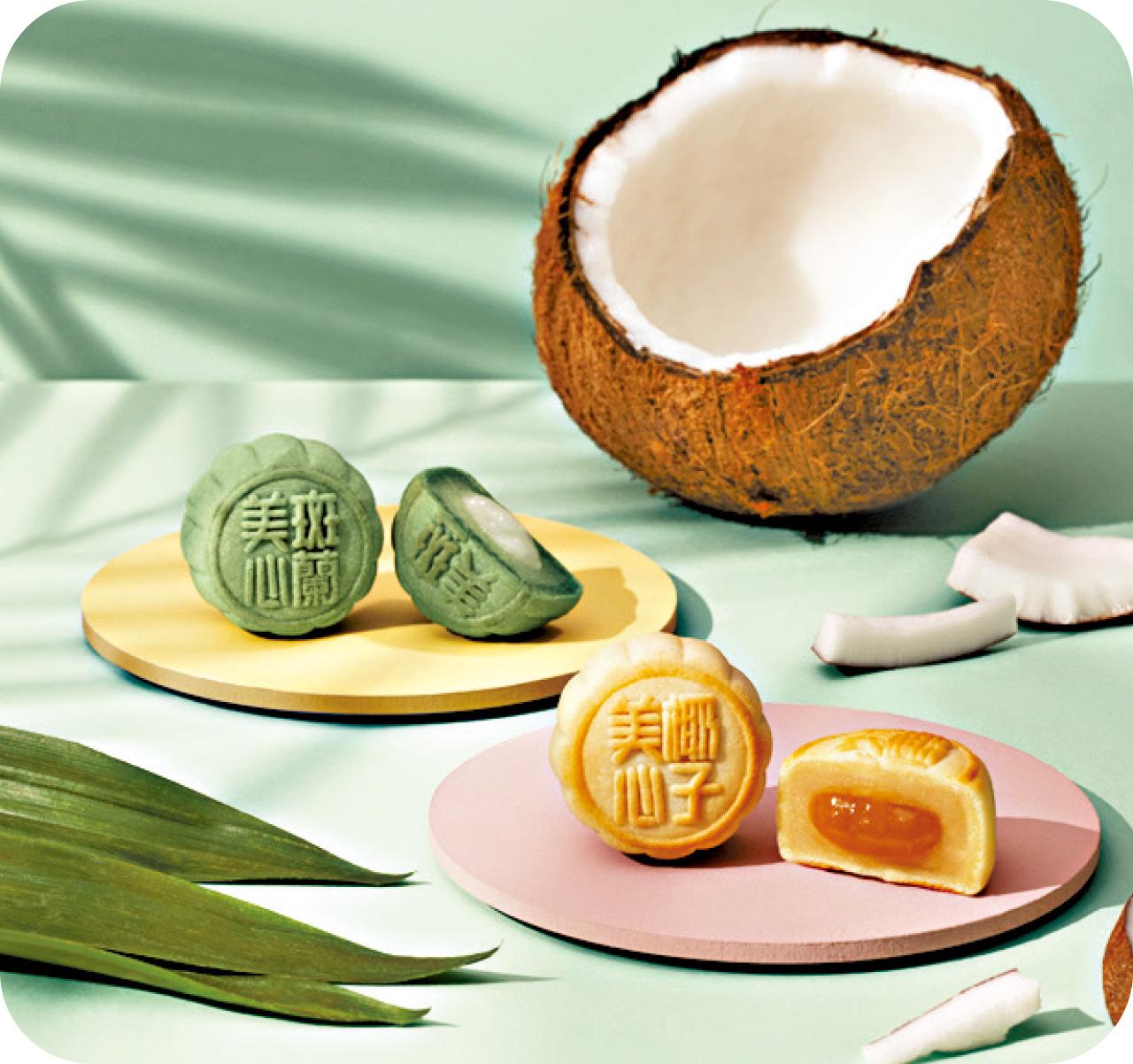 另一款同樣是今年新登場的「美心流心椰子月餅」,採用泰國椰青水和越南椰奶,甘甜醇厚的流心椰子,配上陣陣幽香的流心斑蘭味,椰香入「心」,每一啖都充滿東南亞情懷,實在「泰」正了!