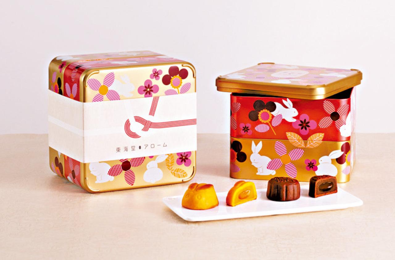 東海堂今年首度推出流心奶黃月餅,並以自家獨創的立體兔子餅模為外形。月見禮盒更包括全新流心奶黃兔仔及流心咖啡朱古力月餅口味。