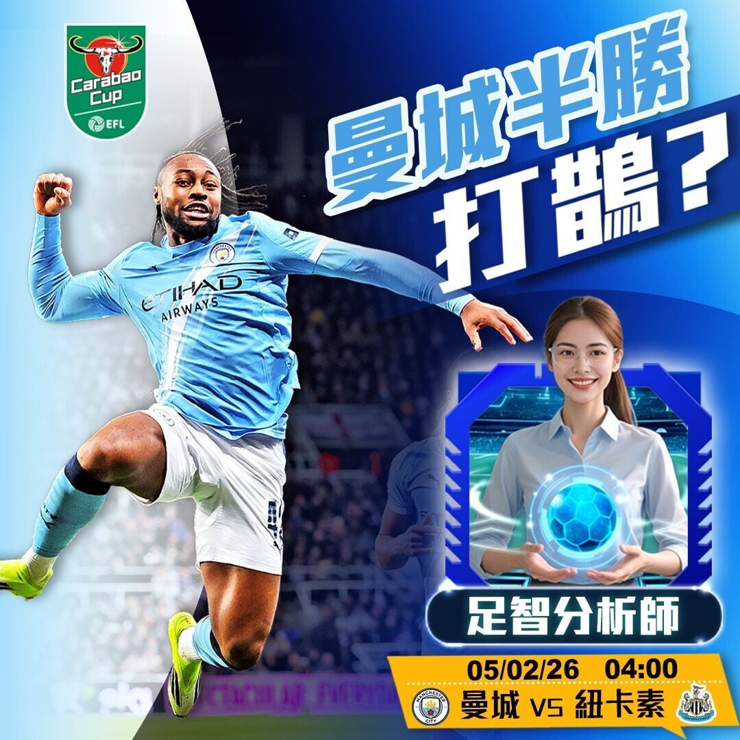 英聯賽4強次回合周三深夜續演好戲,「藍月」曼城帶着首回合贏2:0優勢,返主場再鬥上屆盟主「喜鵲」紐卡素。