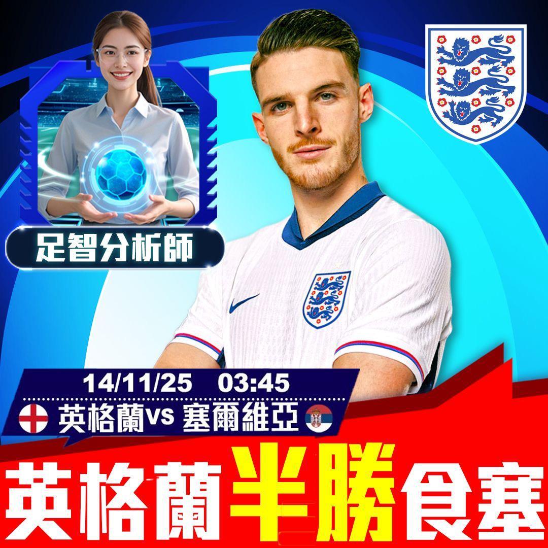 英格蘭在歐洲屬頂流,今屆外圍賽6戰上半場0失球,其中3場主場鬥弱旅俱半場領先1:0。同組對手實力參差,就算杜曹先讓一眾精銳出場,但踢法仍然傾向慢熱保守。塞爾維亞近年戰績走下坡,青黃不接,就算今場要搶分保出線機會,但上月尾才接手的新帥彭魯域,無力揮動搶攻指揮棒。