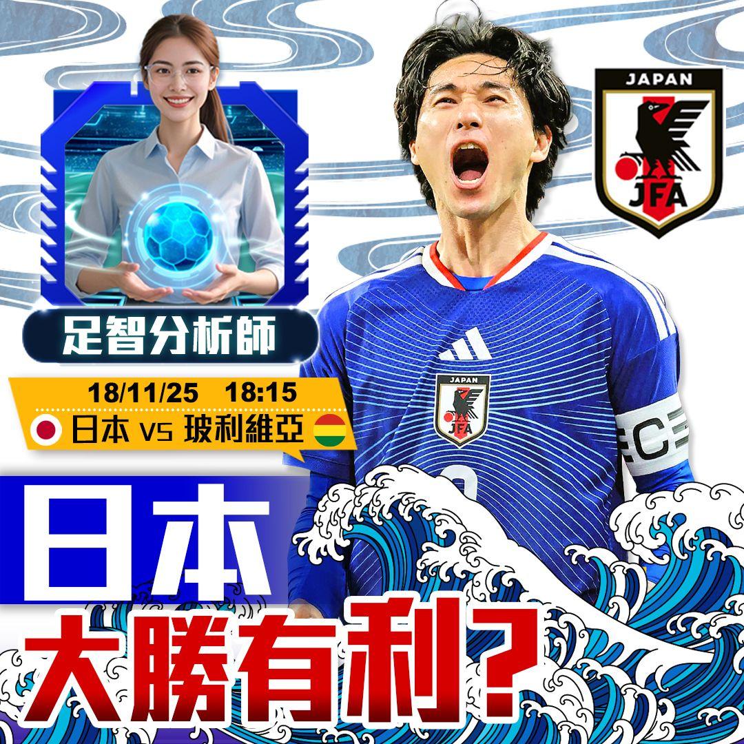 亞洲1哥日本上仗在愛知縣豐田體育場繼續發威,2:0擊退非洲好手加納,寫下連續3場主場國際賽2勝1和佳績。主帥森保一繼續在地頭練兵,今次是近兩個月第3支來訪的南美球隊,而對手玻利維亞亦是今屆世盃外南美區世界排名最低一隊。日本之前鬥巴拉圭及巴西,每場總入球最少開出4球。玻利維亞要為明年三月世盃外洲際附加賽做好準備,球隊上周五國際賽作客南韓淨吞兩蛋,但比賽形勢雖然落下風,但中框射門不少,今場會希望以入球結束亞洲之旅作為其中一個目標。