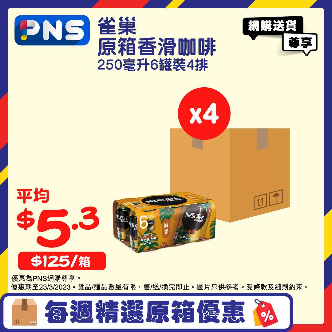 雀巢原箱香滑咖啡250毫升6罐裝4排,$125/箱;