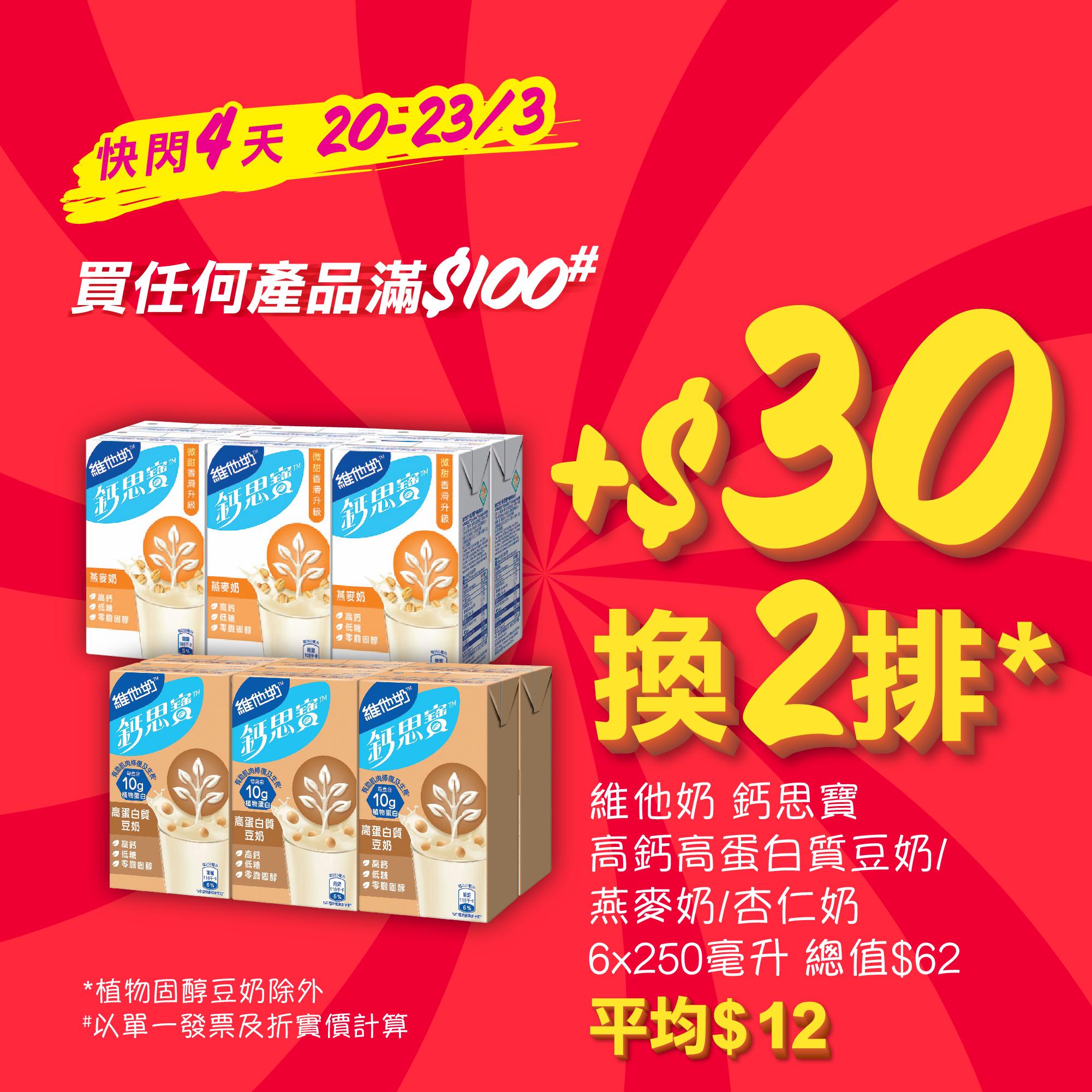 惠康進行新一輪旋風激抵優惠,由即日起至3月23日期間,任選2件食油照價9折;買任何產品滿$100即可以加$36換購3包ACE北海道手打風烏冬,及加$30換購2排維他奶各款鈣思寶奶類飲品!