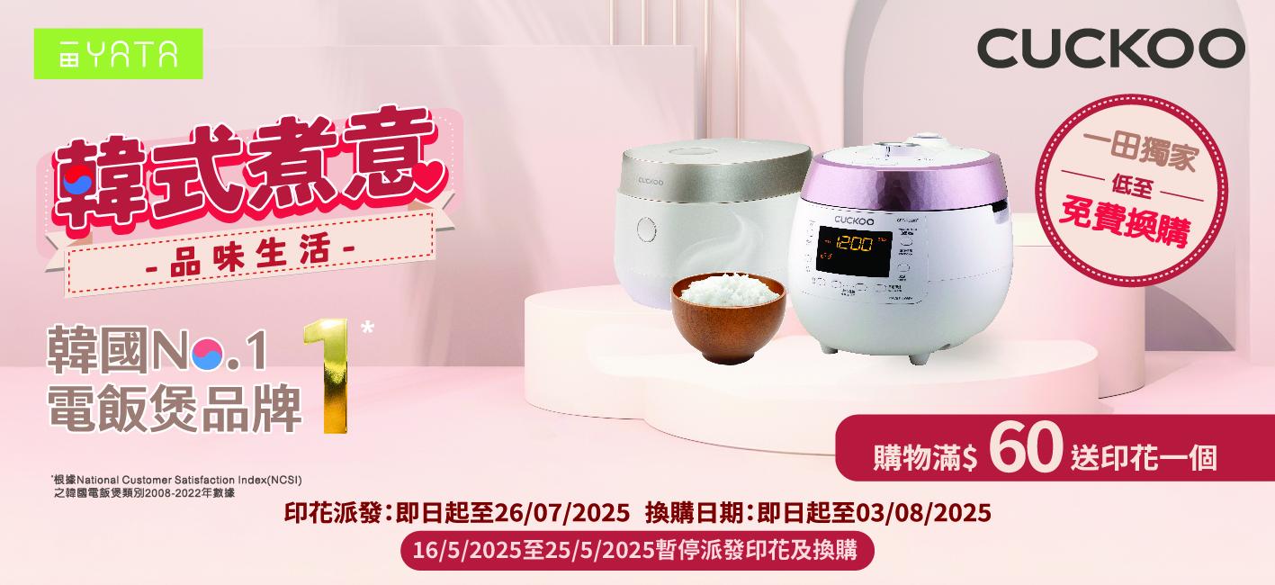 一田聯乘韓國電飯煲品牌CUCKOO印花活動 免費換走獨家最新型號電飯煲/皇牌小家電