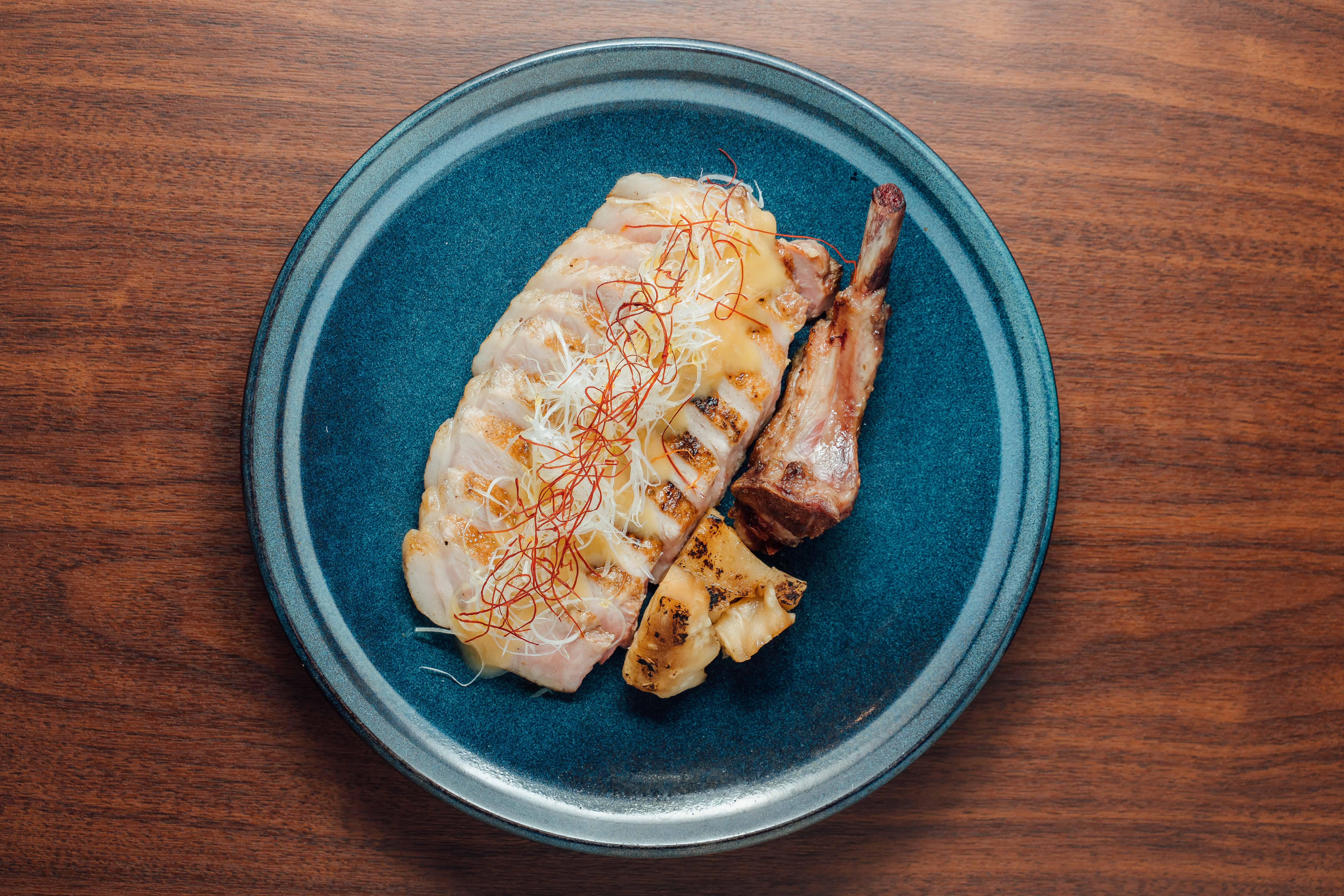 餐牌方面很有驚喜,餐廳選用多款來自日本的食材,炮製與眾不同的Fusion菜式,不只食材配搭特別,賣相擺盤亦有心思,食之前一定要先影相打卡。焦糖野菌布甸、牛肉他他、柚子牛油汁燒豬鞍、慢煮香煎乳鴿等都是招牌菜式,其中最推介黃油雞飯($268),加入本地煲仔飯元素,以炭燒形式炮製脆皮三黃雞,並用三款不同口味的時令雜菌與加入高湯的珍珠米同時煮熟後,再用雞油將飯煎至起焦,最後淋上特製香蔥豉油,充滿油香的黃油雞飯,份外齒頰留香!另外柚子牛油汁燒豬鞍($278)水準亦不錯,原塊豬鞍配柚子牛油汁,味道微甜美味,令人食慾大增,並以芹菜頭作為配菜,淋上蒜油酸汁,取代市面常見以馬鈴薯作配菜的常規,帶來別樣的新鮮感!由於每塊豬鞍厚道不一,廚師需精心控制火候,為食客帶來熟成度與肉汁豐盛的完美豬鞍。