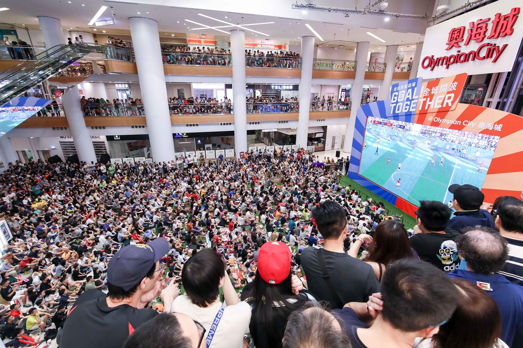 屯門市廣場擁有全港商場最大的540吋4K大電視,超高清畫質足本播放賽事。而奧海城亦有特設座地430吋大電視。