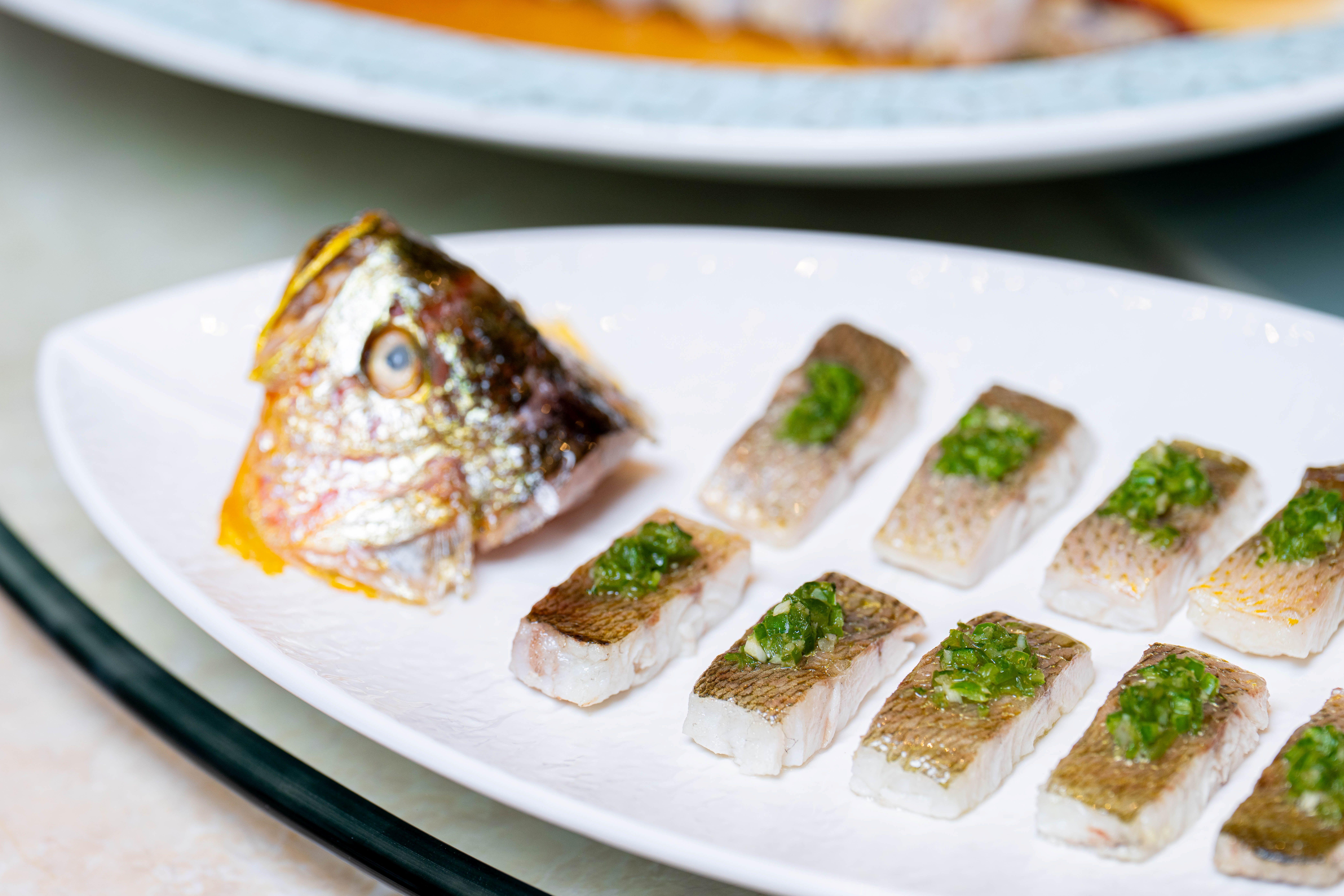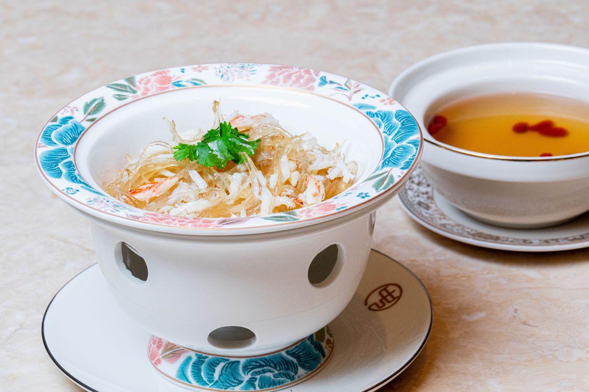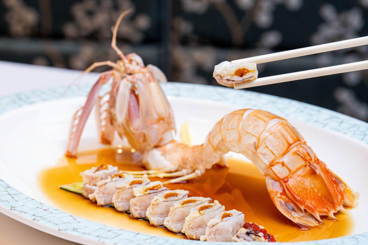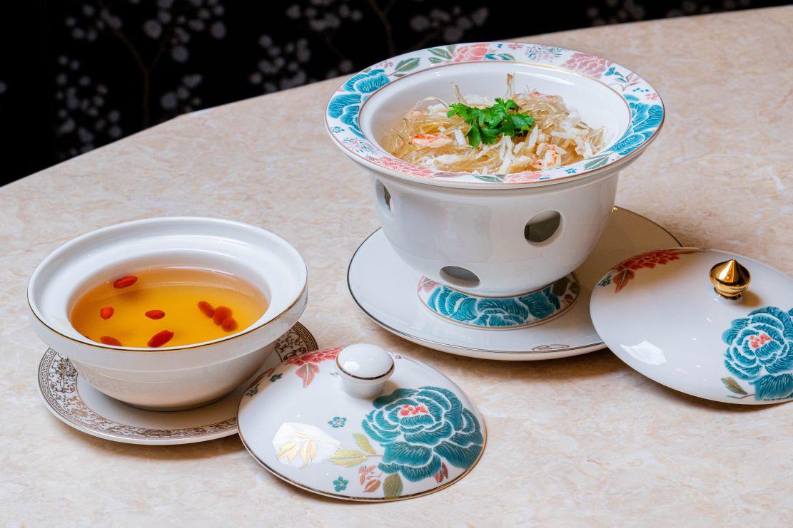 中環飯店的菜單以食材為本,傳統與創新兼備。中環必食菜式包括砂鍋尖椒炒蟹($988),選用肉厚膏香的靚蟹,配以薑蔥蒜蓉和秘製豉椒爆炒,熱氣香氣四溢,蟹膏濃香滿口,辣勁平衡得宜。 喜愛魚鮮的話則要試試辣不辣韮菜生煸方利($598)用上經典粵菜生煸手法,慢火逼出比目魚的油香,魚邊微焦酥香,魚肉仍保持雪白嫩滑,提供辣與不辣兩種選擇,香氣層層遞進。另一道溏心熟醉富貴蝦($558)則將肥美瀨尿蝦以花雕酒與桂花露浸至溏心,蝦肉晶瑩,微甜酒香滲透,入口清香回甘。