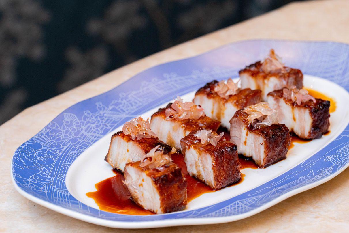 另外菜單上亦有比較親民的地道煲仔菜與特色小炒,同樣水準不俗。例如蜜汁欖角香酥骨($198)炸至金黃,外酥內嫩,鹹香欖角與蜂蜜完美融合;紅酒炆牛尾煲($268)以濃郁紅酒汁入饌,肉質軟滑入味;「片皮雞二食」(港幣$338)更盡顯創意,第一味以香脆雞皮配西柚肉、饅頭與無花果醬,清新解膩;第二味則用避風塘風味爆炒雞件,外酥內嫩,香辣惹味。
