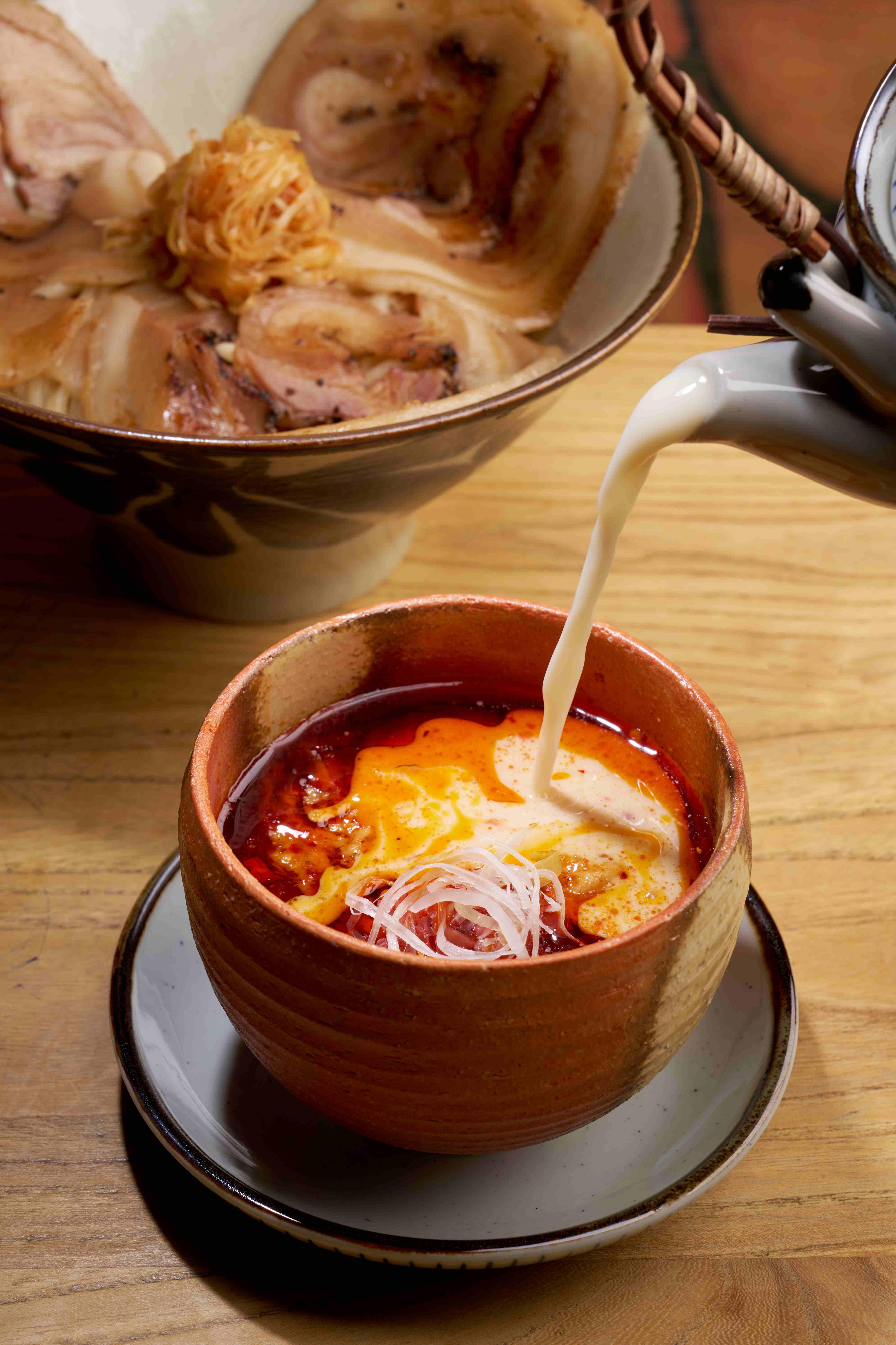 而芝麻味噌醬更精選日本製造100%去皮芝麻,芝麻輕微烘焙,並通過多次磨碎,以展現芝麻天然香氣和順滑口感。為隆重其事,拉麵大師林隆臣更特別以用上日本京都、德島及信州多地味噌,如柚子味噌及白味噌等,調配出風味複雜有致的秘製味噌,完美提升濃雞湯的口感層次。