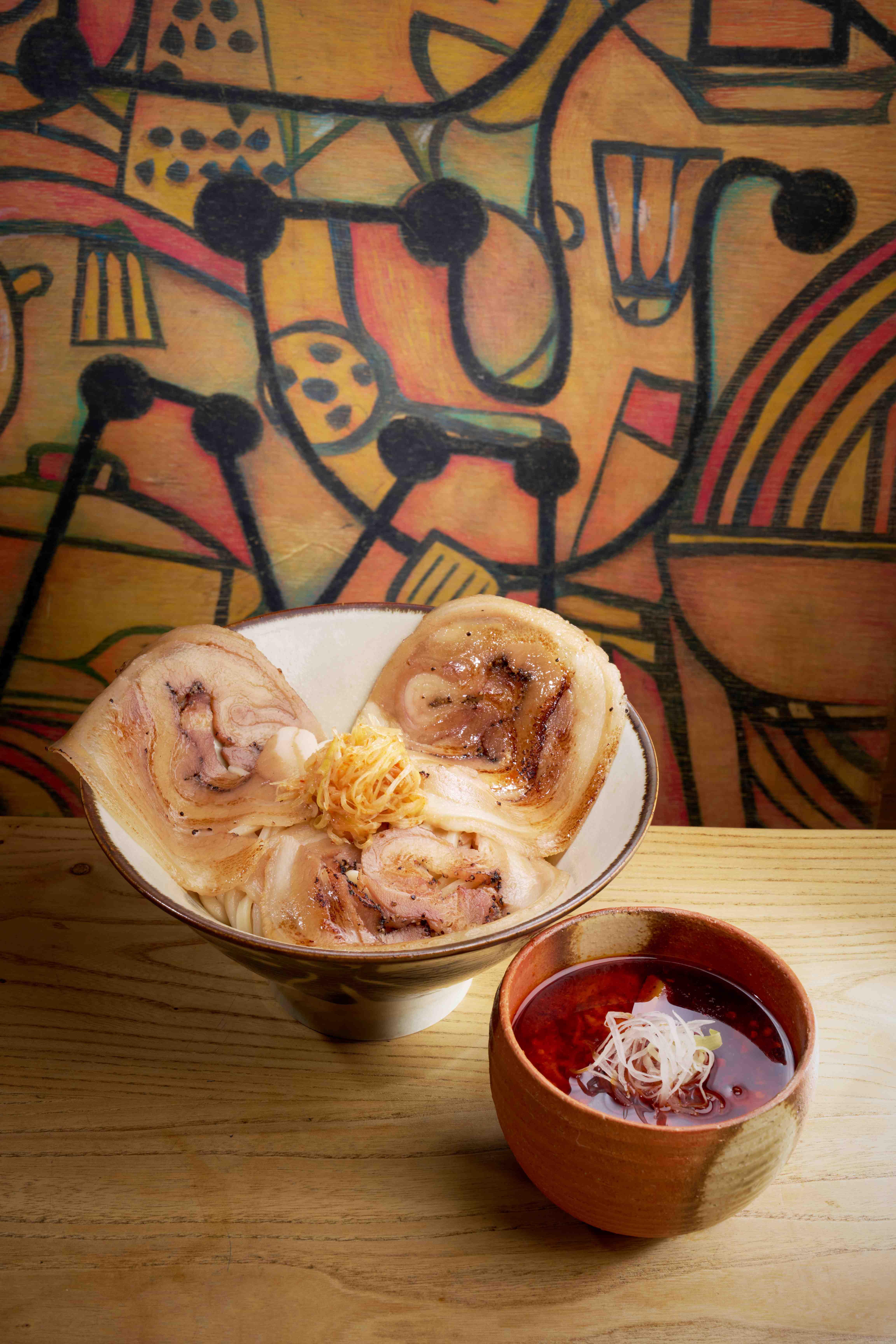 「火炙豚肉担担沾麵」($158;豆乳「湯割」另加$19) 選用日本製的北海道夢之力小麥粉製作的粗麵條,濃郁的雞白湯與芝麻味噌醬熬製而成的沾麵醬汁相結合,帶來令人垂涎的口感和風味。