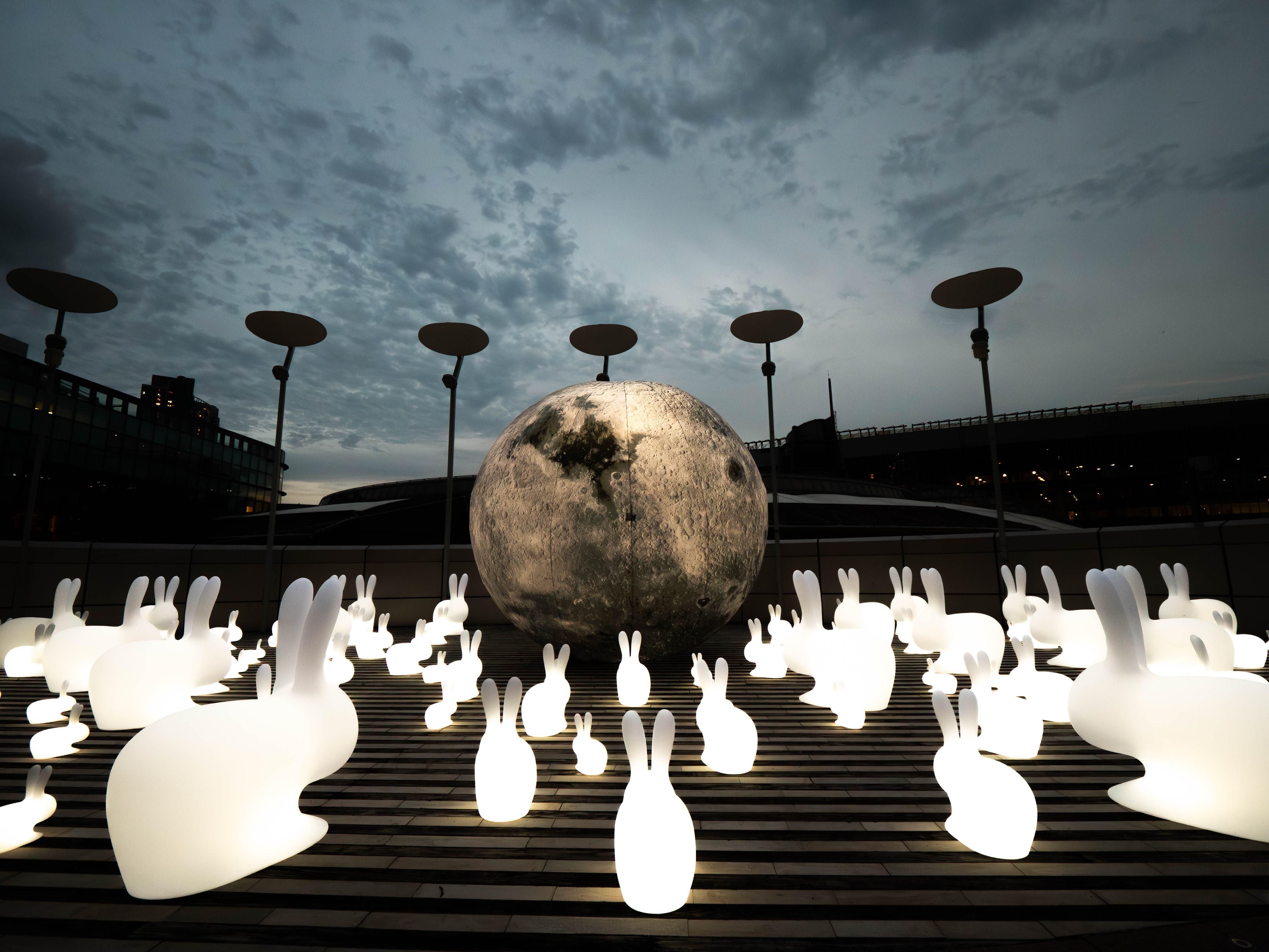 中秋商場打卡位2025|數碼港 200隻玉兔包圍3米高滿月