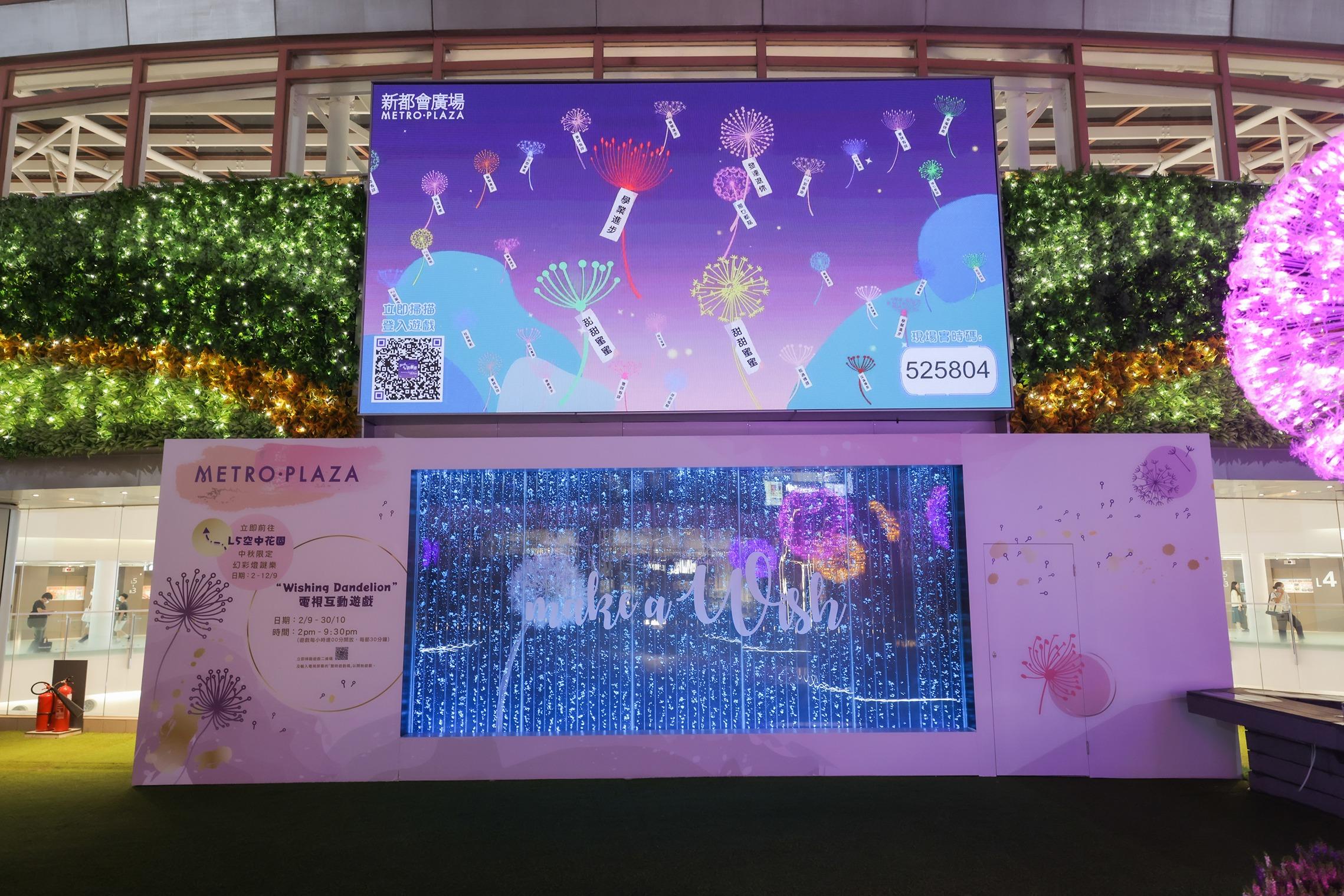 訪客可在蒲公英紛飛的許願牆前拍照,透過新設置的戶外大電視,向親友發送祝福。凡於指定時間參加「Wishing Dandelion」電視互動遊戲,掃描場內二維碼後,便可揀選心水願望如「旺到飛起」、「荷包漲爆」等,並隨即投射到大電視屏幕。於指定時段參加電視互動遊戲,最快完成並分享至社交平台的50位參加者,即可獲得「食飯睇戲玩住賞」獎賞,包括$50電影贈券或$50指定餐飲贈券。