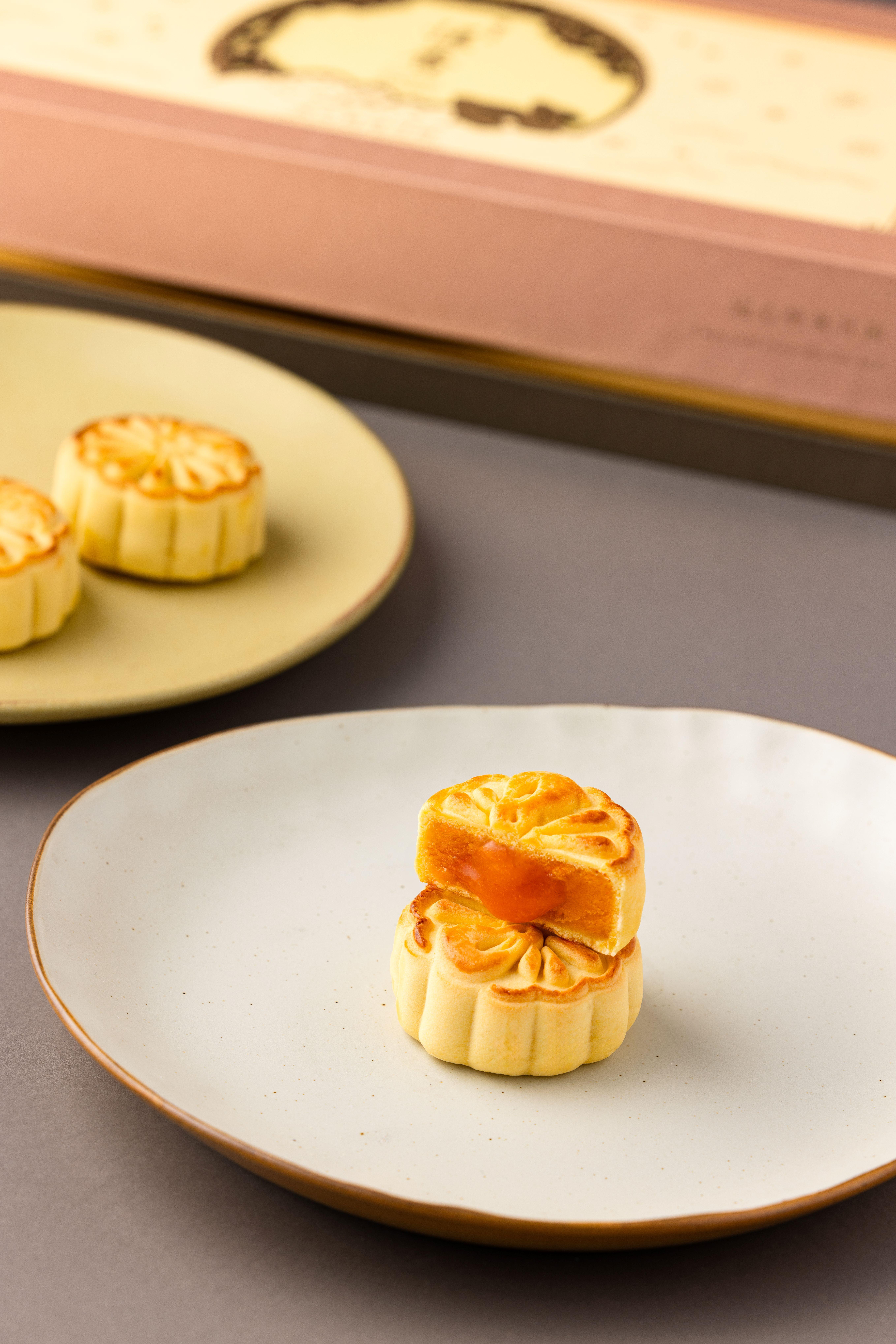 恆香老餅家的流心奶黃系列一向口碑好,今年品牌更推出新品「日式茗茶月餅」(售價$468,早鳥價$228),內含人氣「流心抹茶紅豆月餅」及新口味「焙茶麻糬月餅」,以日式麻糬與焙茶粉製作,茶味香濃,麻糬煙韌,入口層次豐富。而以皇牌老婆餅酥皮作主打酥小月系列同樣有新口味登場,「蛋黃鳳梨酥皮月餅」(售價$248,早鳥價$178)以酸甜的鳳梨肉配上粒粒鹹香蛋黃碎;「特濃軟心黑芝麻酥皮月餅」(售價$248,早鳥價$178)則選用上品黑芝麻製成,味道醇厚。