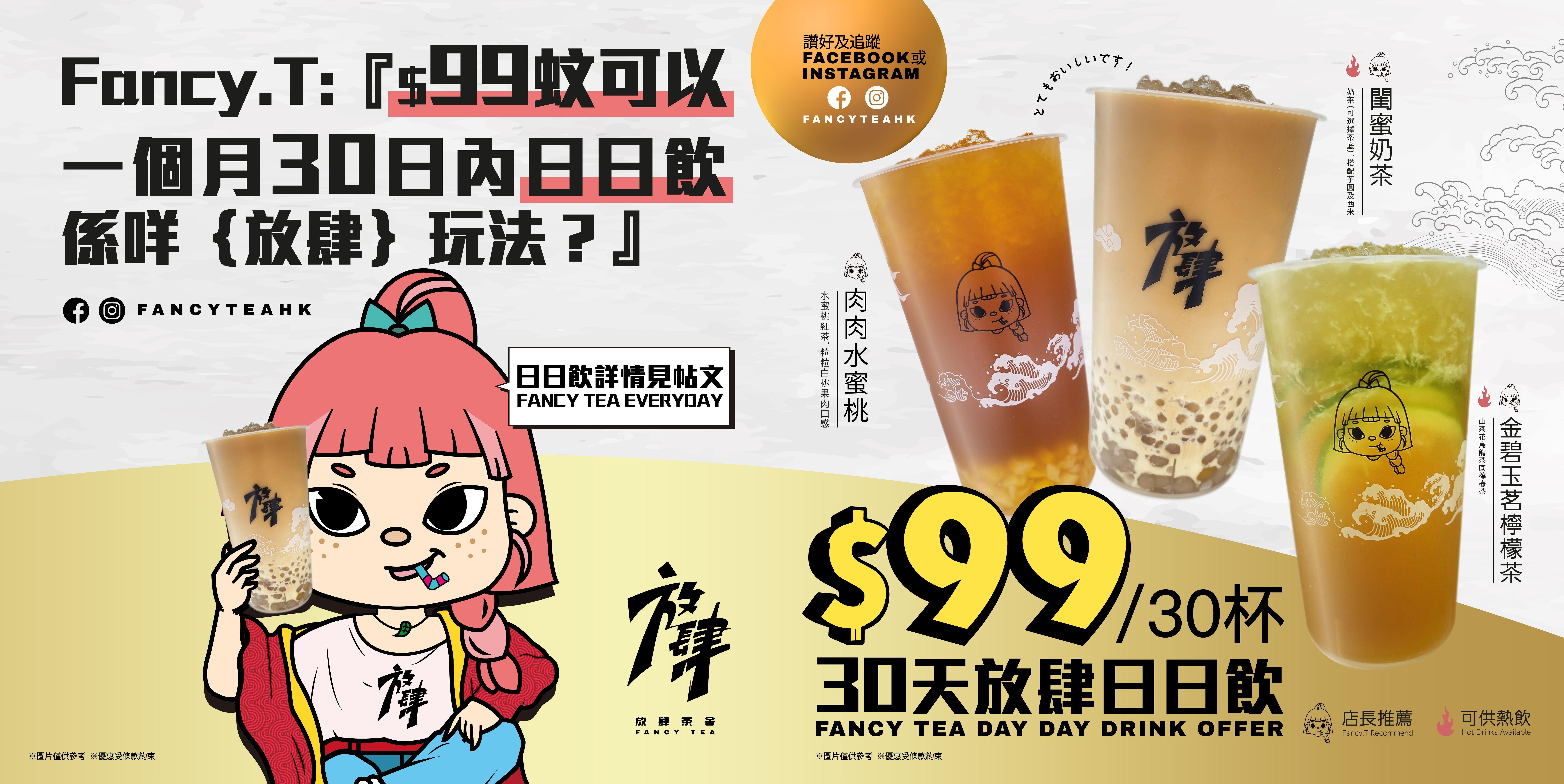 不少人都喜歡飲杯裝茶飲,在繁忙的生活為自己打氣。「放肆茶舍 Fancy Tea 」位於銅鑼灣,自去年開業後一直大受附近街坊歡迎,店舖近日推出全港首見的「 $99蚊 30天放肆日日飲 」期間優惠,大家只需購買$99月票,即可以在30天有效期內每日換指定特色手搖茶一杯,基本上飲三次已經回本,相當超值!