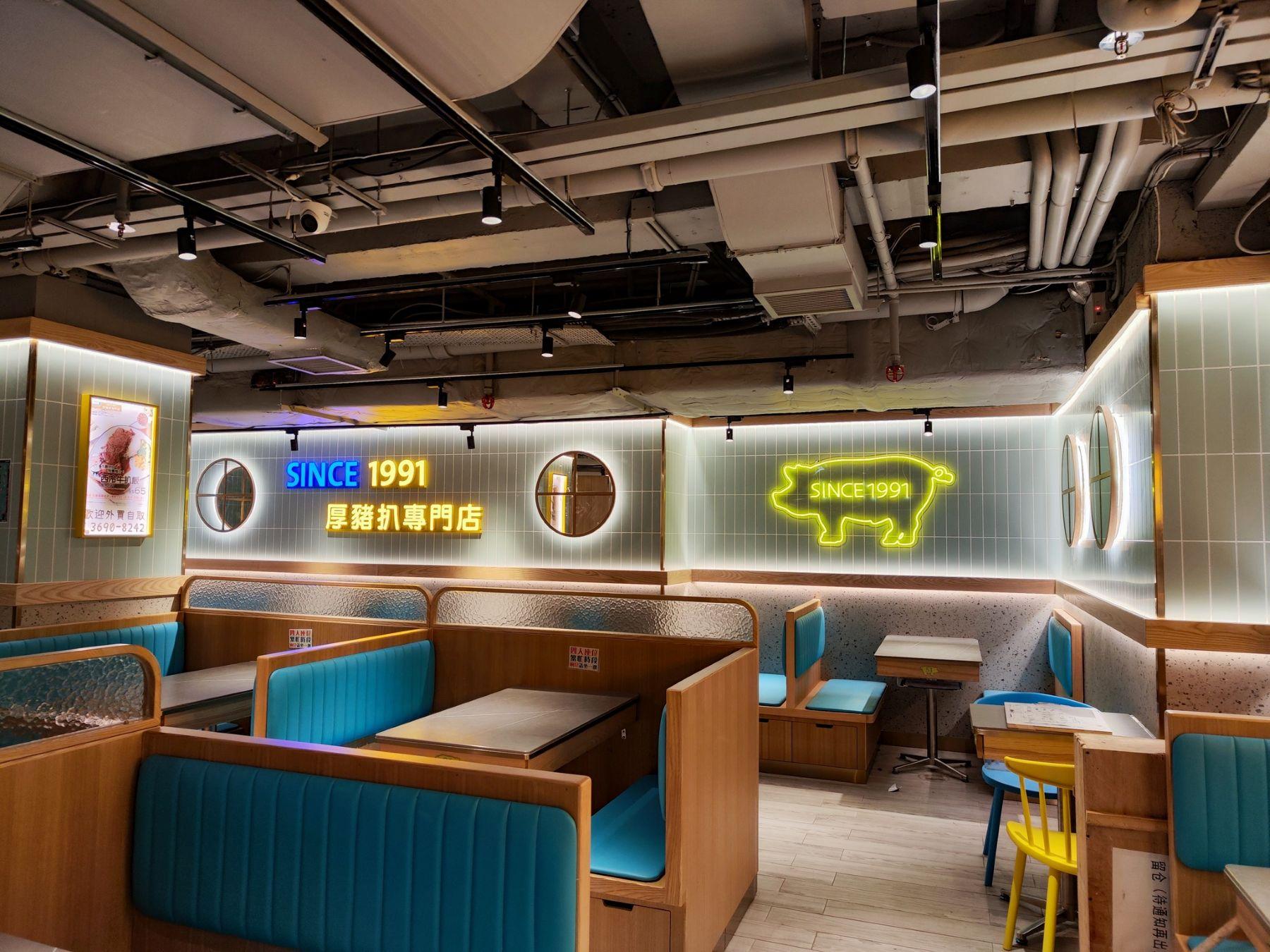 冰室設計以香港七、八十年代為主題,供應港式奶茶、西多士、炒粉麵飯等港式美食,價格經濟實惠。招牌厚豬扒份量十足,即叫即煎,外脆內嫩。食客身穿運動服裝打卡,惠顧滿$100可免費獲贈招牌厚豬扒一塊或冷、熱飲一杯。