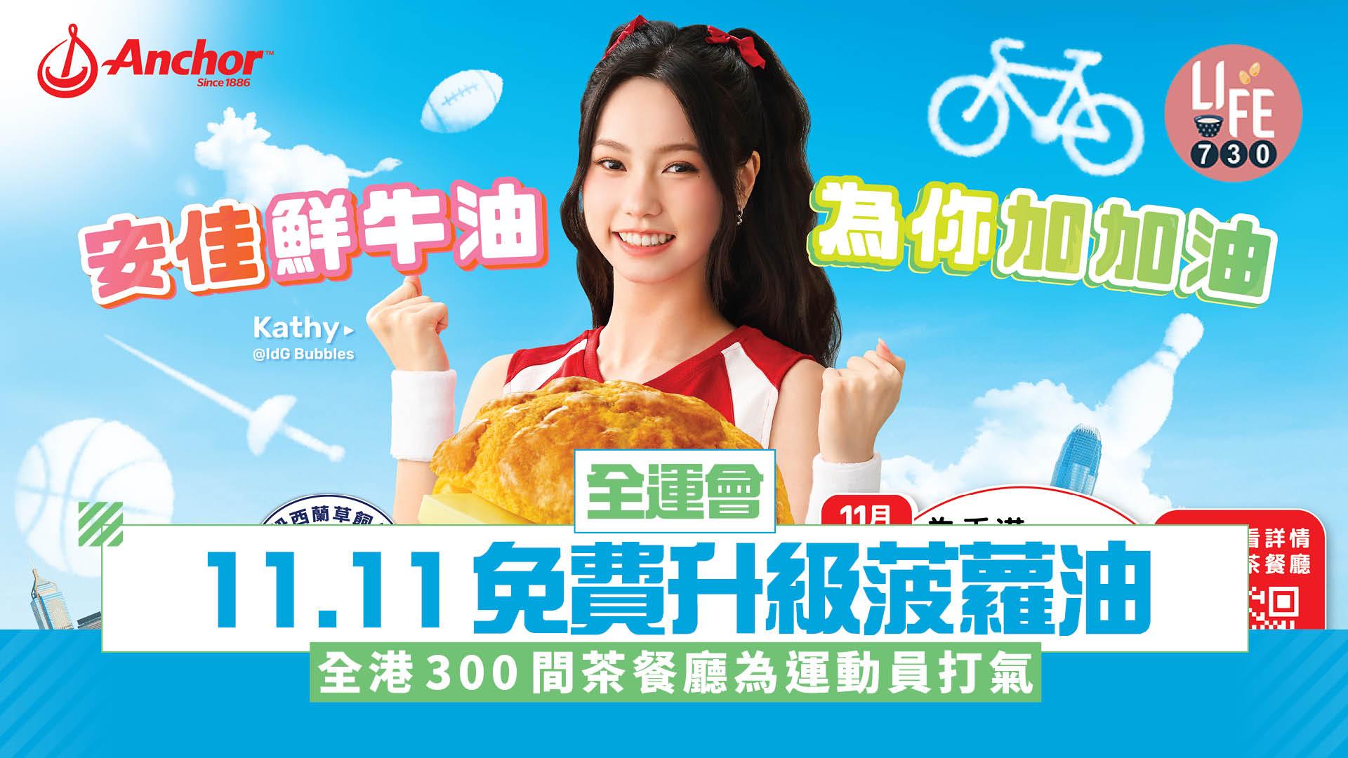 四年一度的「第十五屆全國運動會」(全運會)現已開幕,一直是本地茶餐廳最佳拍檔的紐西蘭乳製品品牌 Anchor安佳,聯同300間茶餐廳,一同為香港運動員打打氣!本日(11日),食客只需到惠顧菠蘿包,即可免費升級成菠蘿油!