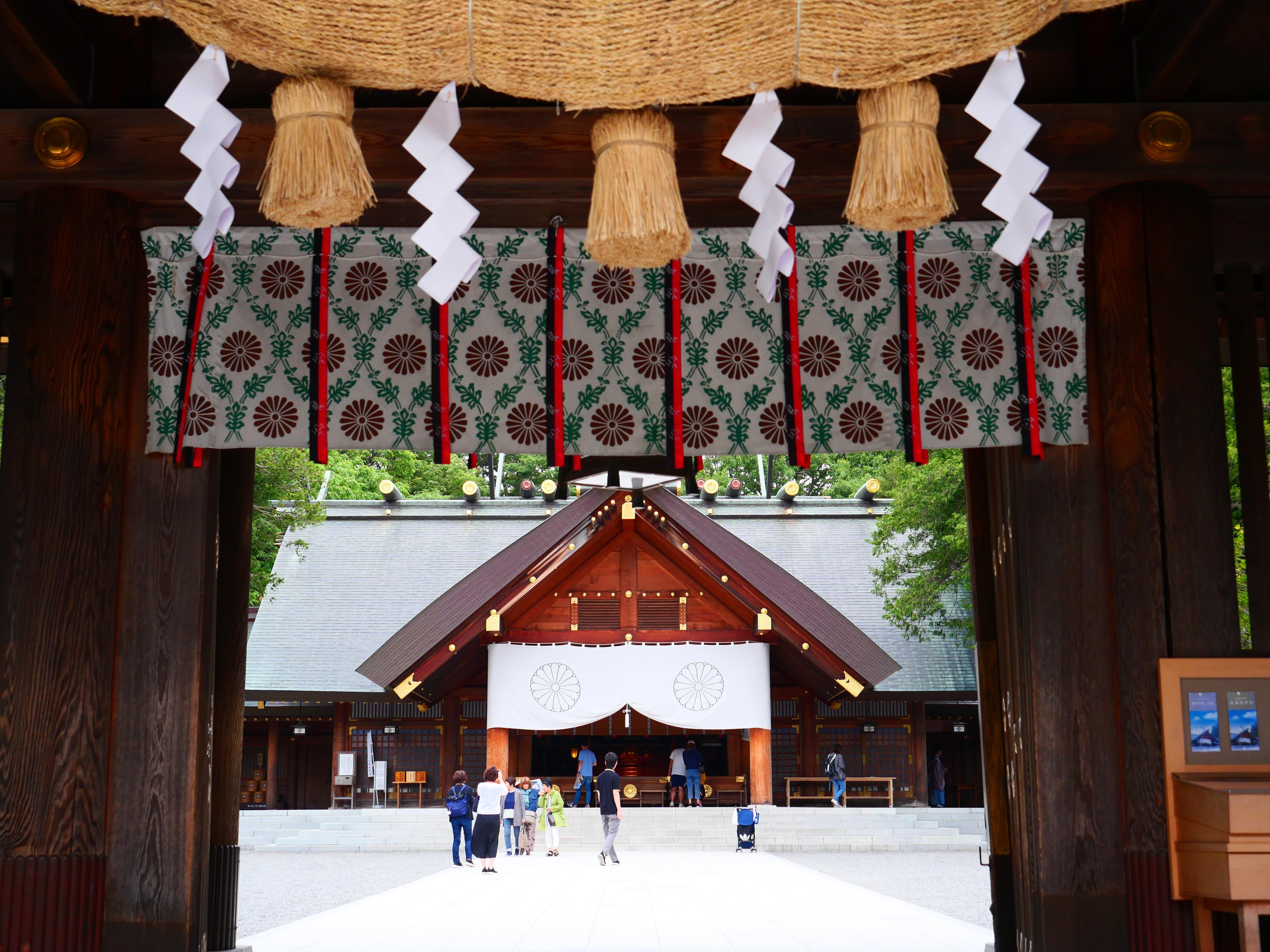 創建於1869年,原名「札幌神社」,是北海道的總守護神,也是道內最大神社。位於札幌市近郊的円山公園內,主祀明治天皇,以及開拓北海道的守護神:大國魂神、大那牟遲神與及少彥名神,合稱「開拓三神」,地位崇高之餘,更種有1,400株櫻花,成為札幌著名的賞櫻胜地。不過最有趣的,還是北海道神宮獨有的鬆馳熊繪馬,成為年輕戀人與高中女生祈求愛情的名物。