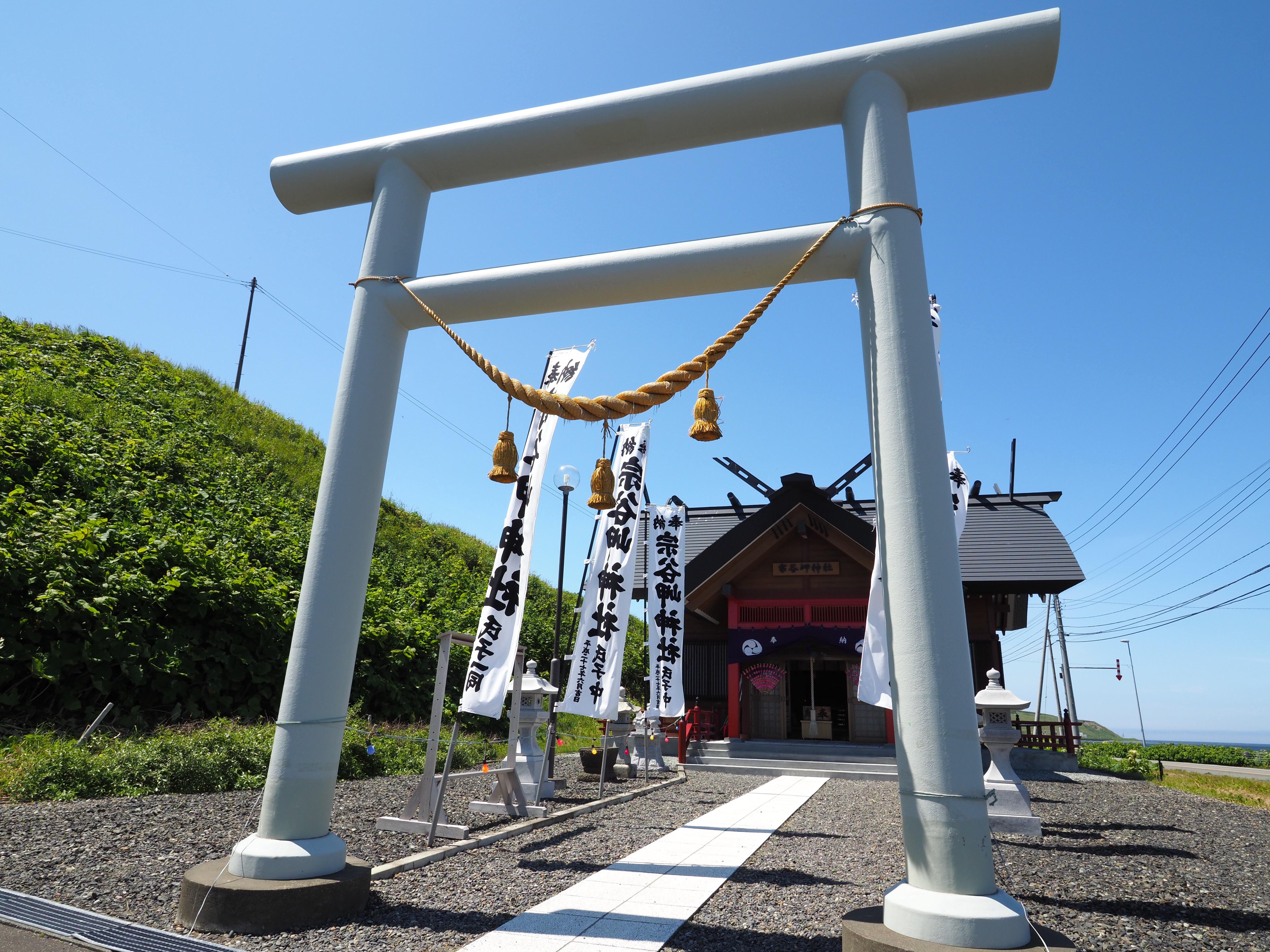 號稱「日本最北端神社」的宗谷岬神社,位於北海道最北端——稚內的宗谷岬,明治22年(1889年)始建於稚内大岬地區,2001年才遷至宗谷岬海邊,附近築有「日本最北端地碑」 。面積不大,但小巧精緻,主祭市杵島姫命,祈求安産、商賣繁盛和旅行交通安全。
