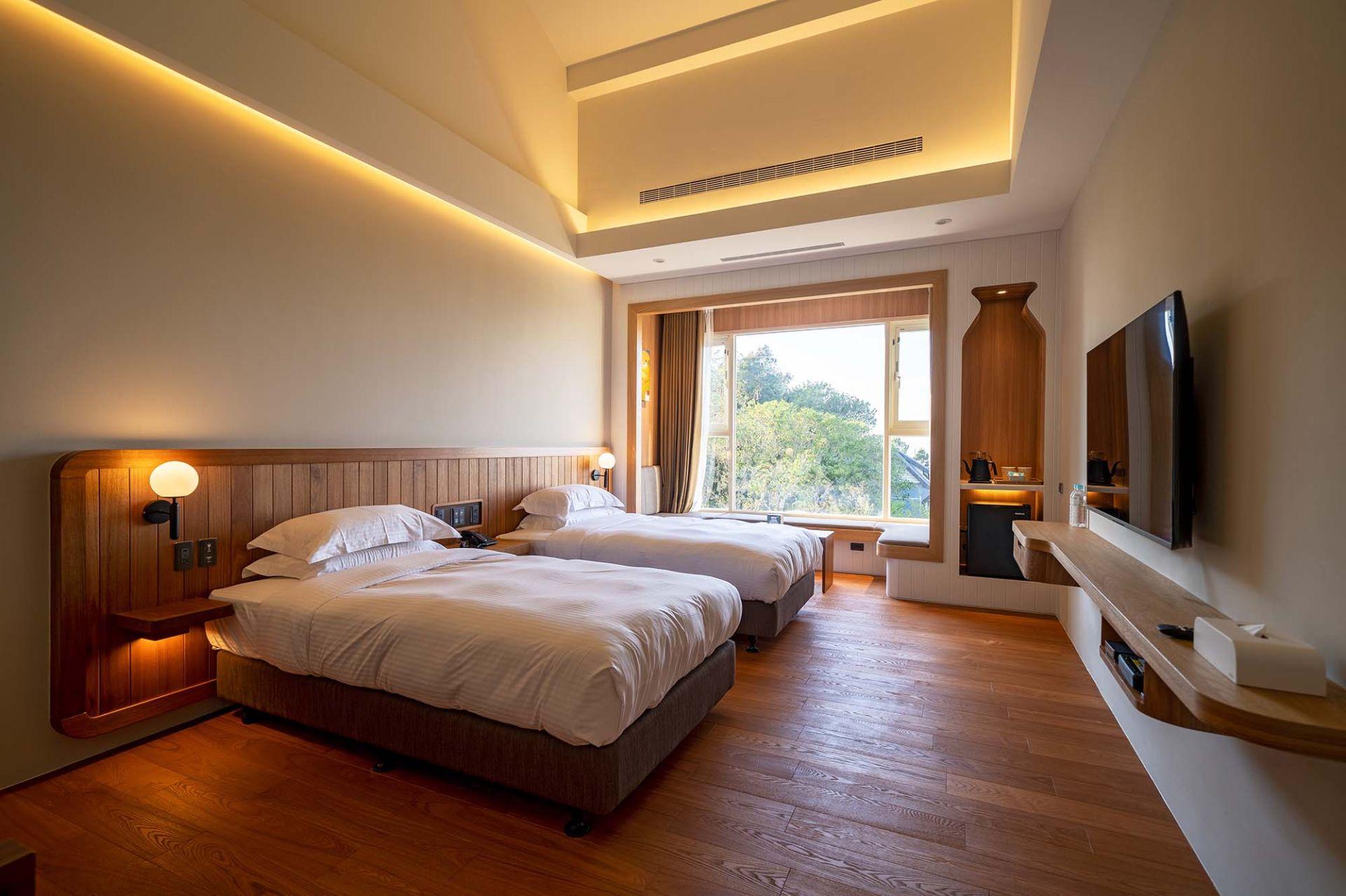 來到飛牛牧場,可以選擇旗下最新住宿-舞牛森度假飯店,住宿設有6款房型,最多可以4人同時入住,設計融合自然環境,「無印風」的設計乾淨企理,窗外風景仿如瑞士山區小鎮。今次入住的是「山采 雙人房」,房內有2張單人床、乾濕分離的浴室、TOTO免治馬桶、SONY 55吋4K電視等設施,配套絕對不輸市區酒店,房內Mini Bar可以隨意享用,住得滿意又舒適!餐飲選擇方面,設於酒店大堂的「森饗廳」提供全天候餐飲服務,早午晚三餐都可以在此用餐,早餐可選台式或西式,份量十足;晚餐則運用台灣食材並揉合西式烹調手法,擺盤精緻,味道有水準。