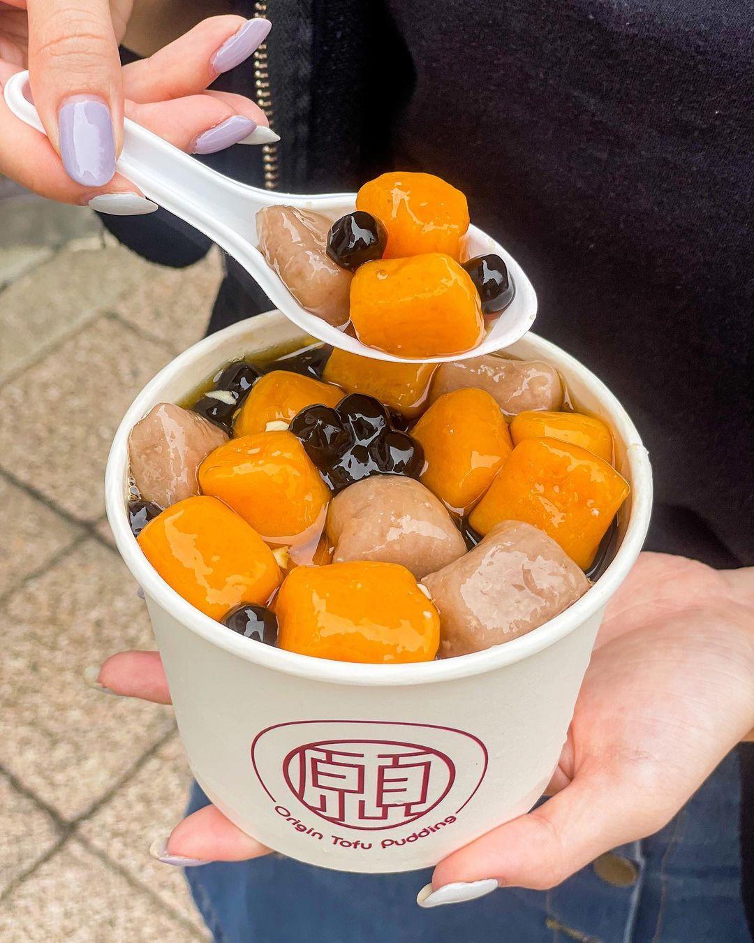台灣向來有大量芋圓甜品店,大部分都有質素。今次要介紹的「本願豆花店」開業近三年,算是西門町裡面的新力軍,主要賣豆花、紅豆湯、仙草等經典台灣甜品,裝修走文青風格,招牌幽默地寫上「祖傳三代,目前第一代」,成功吸引不少年輕人到店光顧。來店必食傳統豆花加配地瓜圓,豆花香滑,地瓜圓口感Q彈,帶有嚼勁,吃起來有地瓜香氣突出,相當不錯。