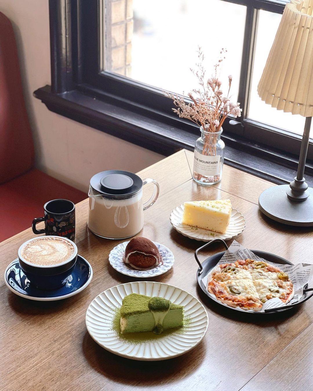 中山堂建於日治時期1936 年,是台北市的二級古蹟的建築,看起來充滿歷史痕跡,是市內藝文活動展演空間。近年中山堂裡頭有一間咖啡店開業,運用了建築特色,很有復古氣氛。食物方面,最受歡迎的是小山園抹茶千層蛋糕,餅皮濕潤,層次分明,入口有濃厚的抹茶甘香,甜度適中。